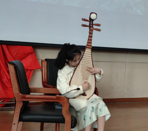 (图为22级测绘张佳艺同学弹奏琵琶)