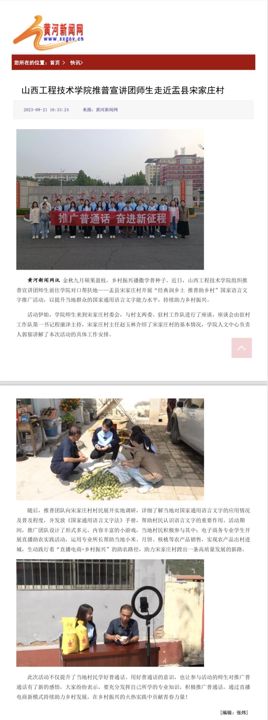 【媒体聚焦】黄河新闻网报道ac米兰官方网站推普宣讲团师生走近盂县宋家庄村