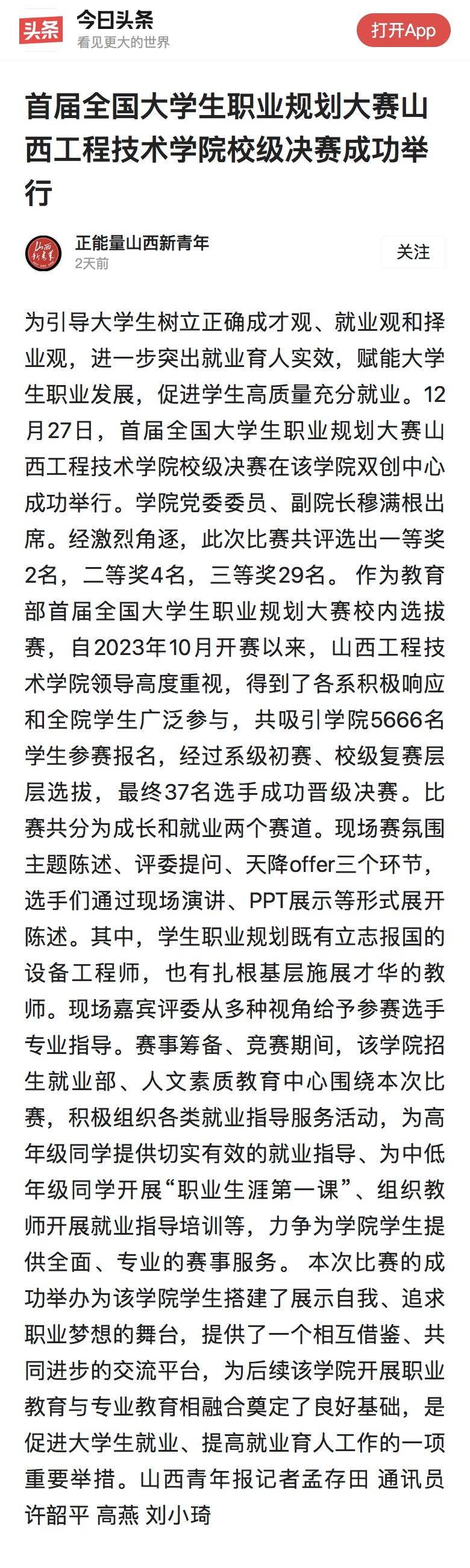 【媒体聚焦】今日头条12月27日报道首届全国大学生职业规划大赛ac米兰官方网站校级决赛成功举行
