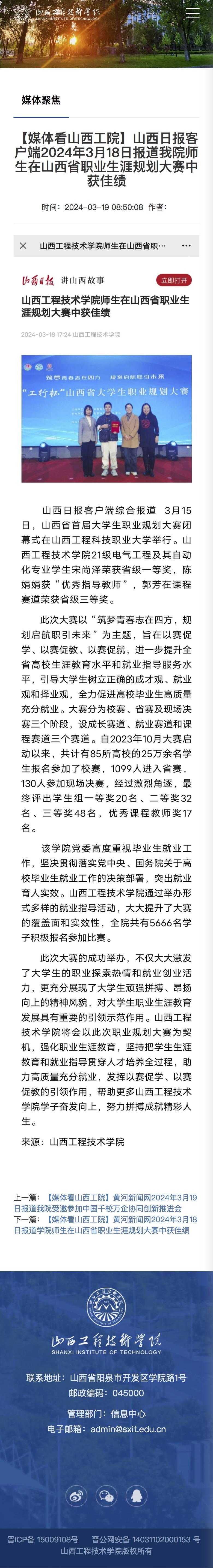 【媒体聚焦】3月18日山西日报客户端报道ac米兰师生在山西省职业生涯规划大赛中获佳绩