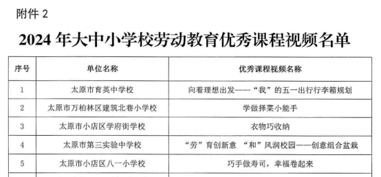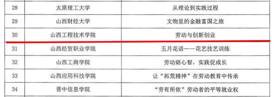 近日山西省教育厅正式发布了《关于公布2024年大中小学校劳动教育典型案例及优秀课程视频名单的通知》晋教政函【2024】42号,ac米兰课程《劳动与创新创业》成功入选山西省优秀课程视频。
