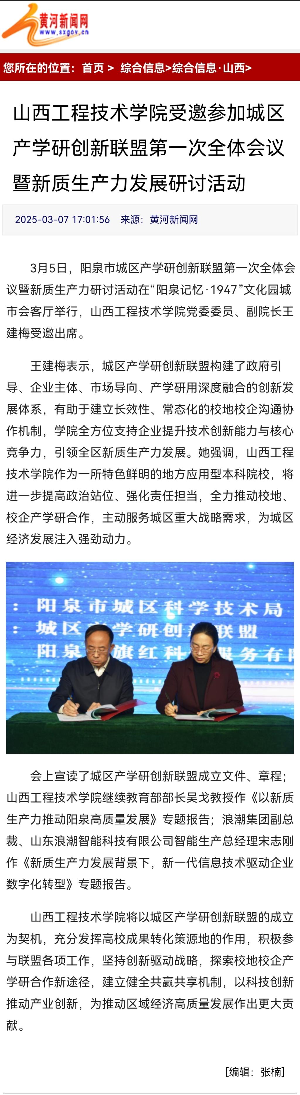 【媒体聚焦】3月7日黄河新闻网报道ac米兰官方网站受邀参加城区产学研创新联盟第一次全体会议