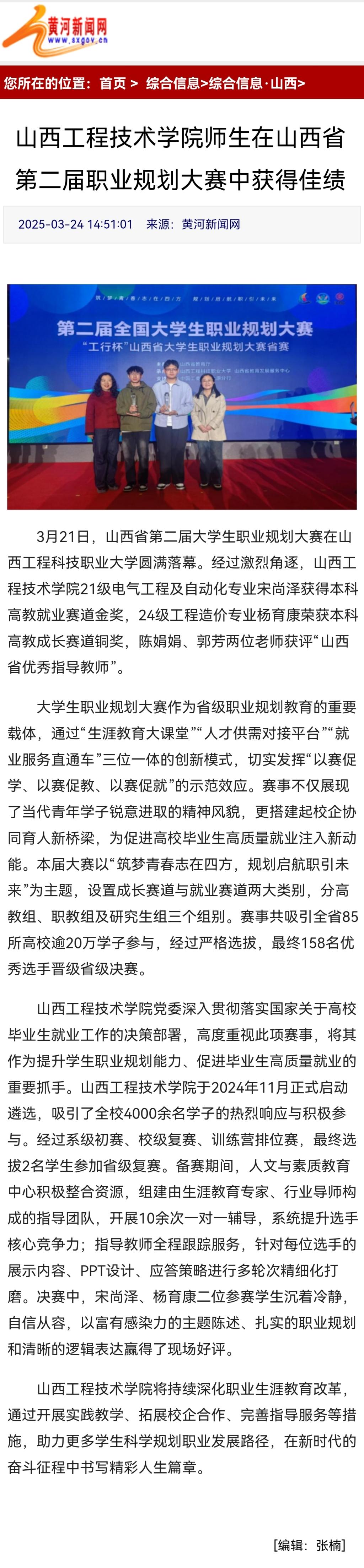 【媒体聚焦】3月24日黄河新闻网报道ac米兰官方网站师生在山西省第二届职业规划大赛中获得佳绩