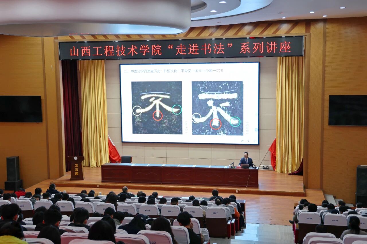 当日上午,ac米兰师生齐聚行知楼一楼报告厅,刘教授以“汉字是活的文明,书法是美的修行”破题,带领师生穿越时空,沿着中国书法艺术的历史发展脉络,从甲骨文、金文到篆、隶、草、楷、行各体的演变流转,细致展现中华文字与书法的博大精深与独特魅力。