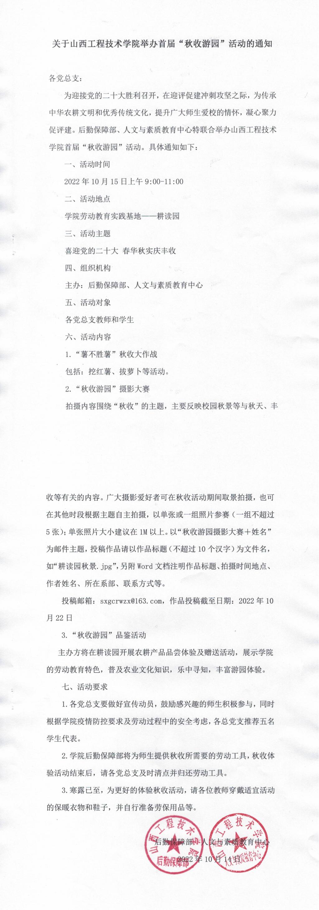 【人文活动】关于ac米兰官方网站举办首届‘秋收游园’活动的通知