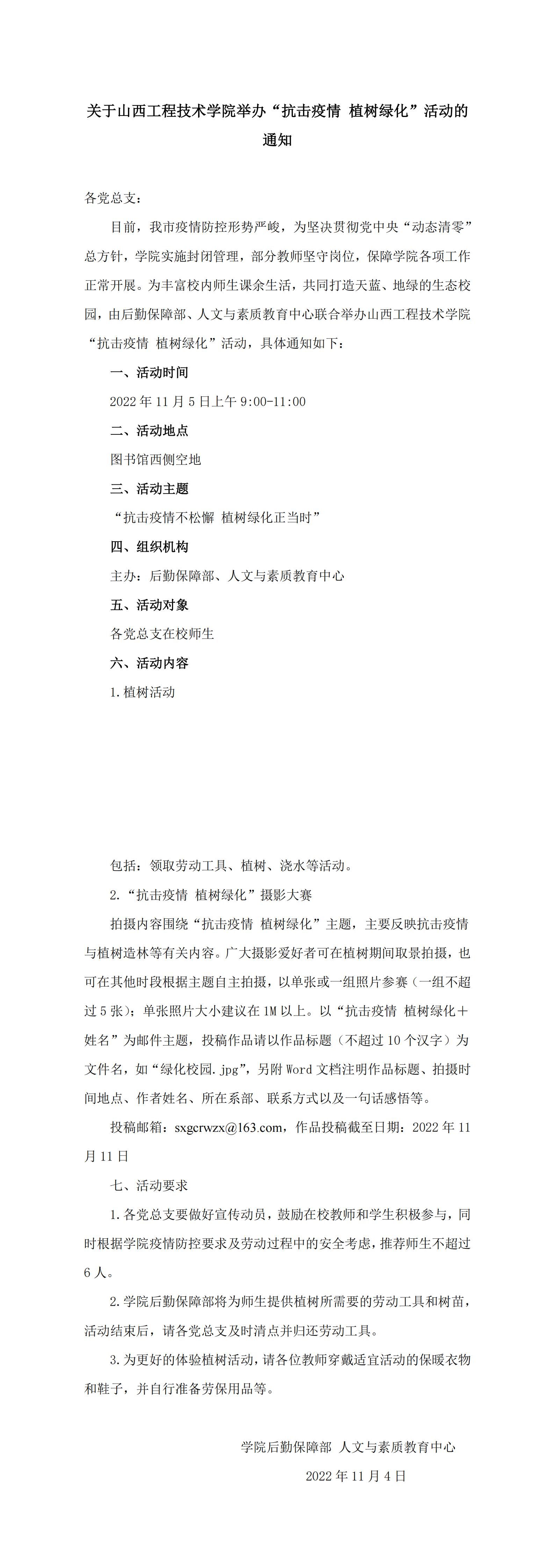 【人文活动】关于ac米兰官方网站举办“抗击疫情 植树绿化”活动的通知