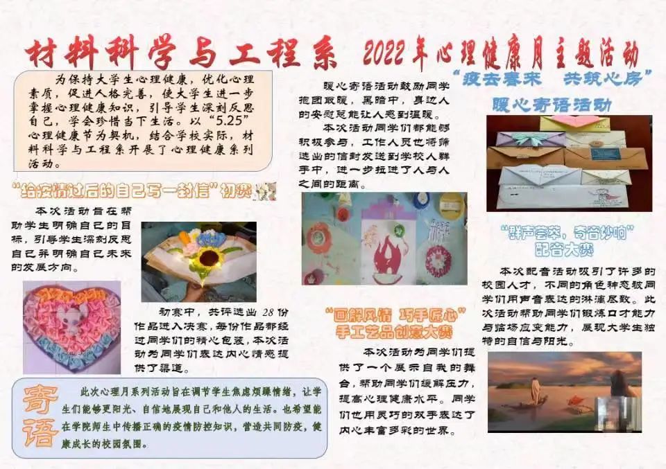 一封封写给疫情过后的自己的书信是写信者对疫情结束的期望,同时也是对自己未来的展望;一件件手工制品是创作人内心丰富世界的呈现,亦是其缓解焦虑等情绪的方式;一段段情感真挚的配音作品是配音师口才和临场应变能力的表露,是当代大学生自信与阳光的表达与展示;一句句暖心寄语更是给未曾谋面之人的鼓励与慰藉…