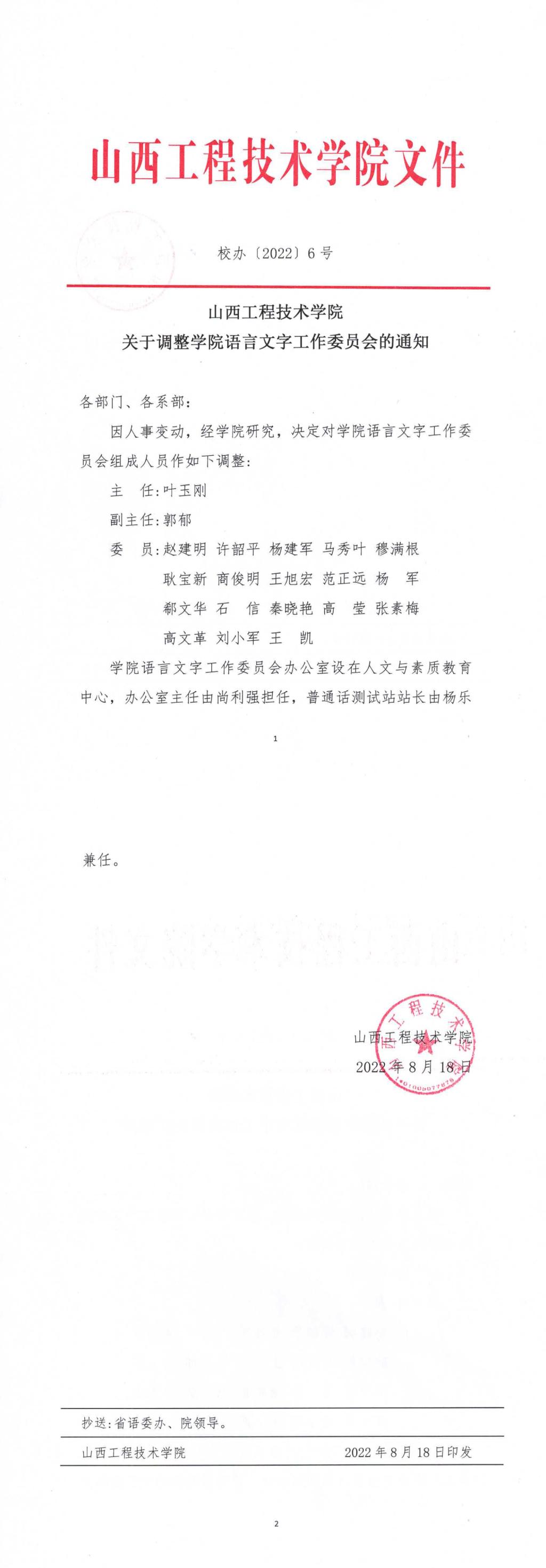 校办[2022]6号 ac米兰官方网站关于调整学院语言文字工作委员会的通知