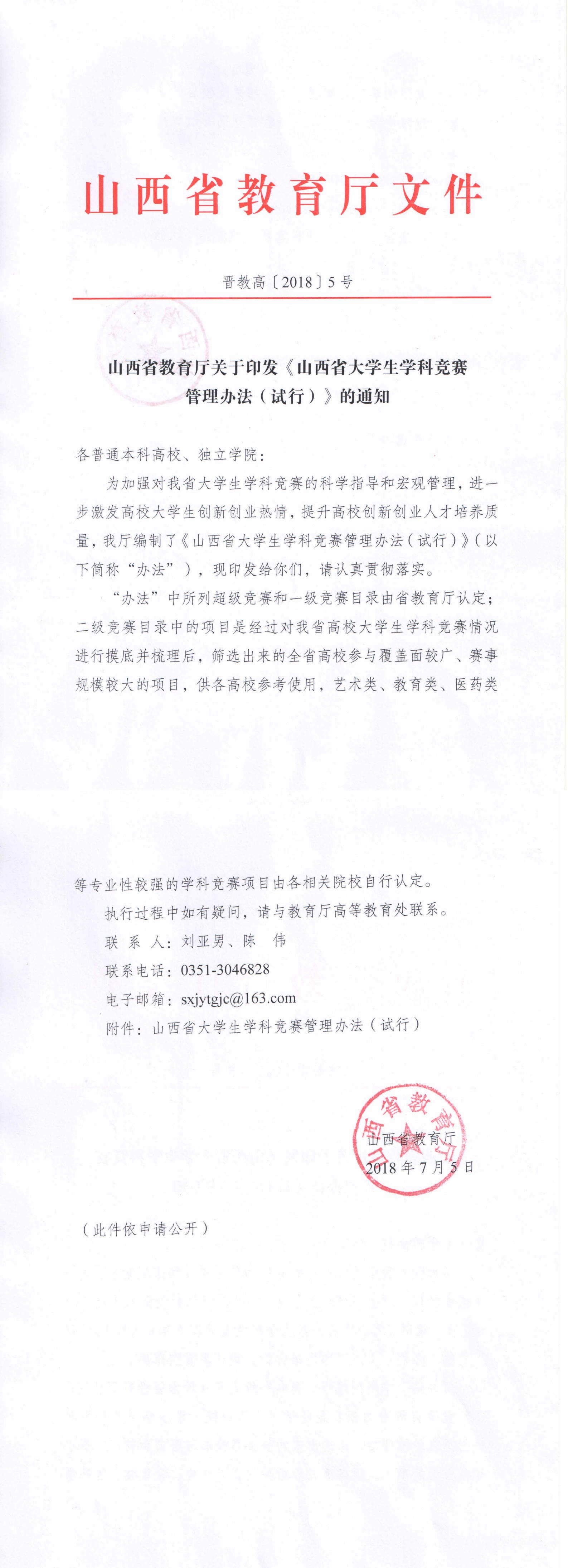 晋教高〔2018〕5号 山西省教育厅关于印发《山西省大学生学科竞赛管理办法(试行)》的通知