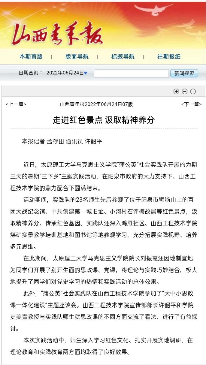 山西青年报专题报道——走进红色景点 汲取精神养分