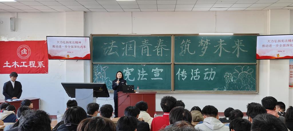为了宣传宪法精神,培养大学生的法治思维,提升同学们的法律素养,12月3日在致学楼405举办了“法润青春,筑梦未来”宪法宣传活动。此次活动由院团委主办,土木工程系分团委承办。