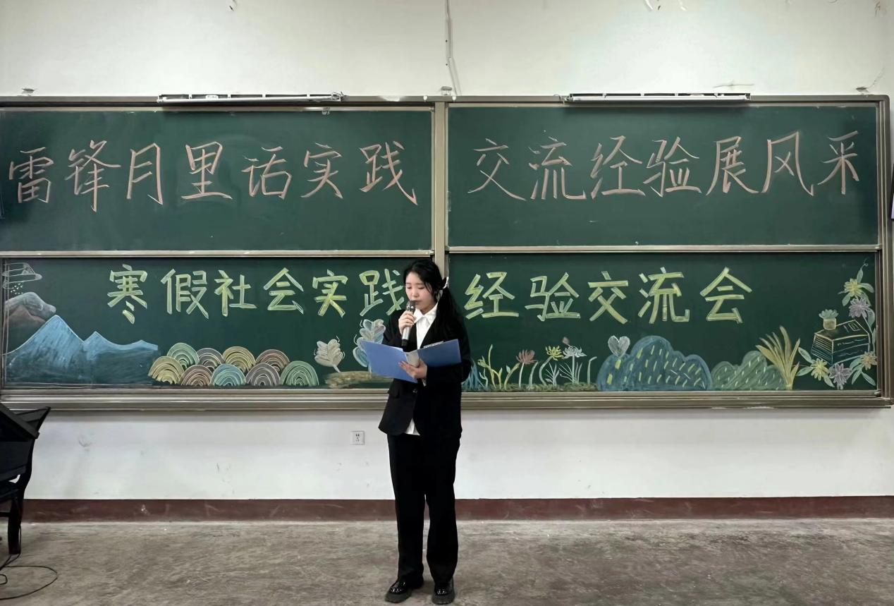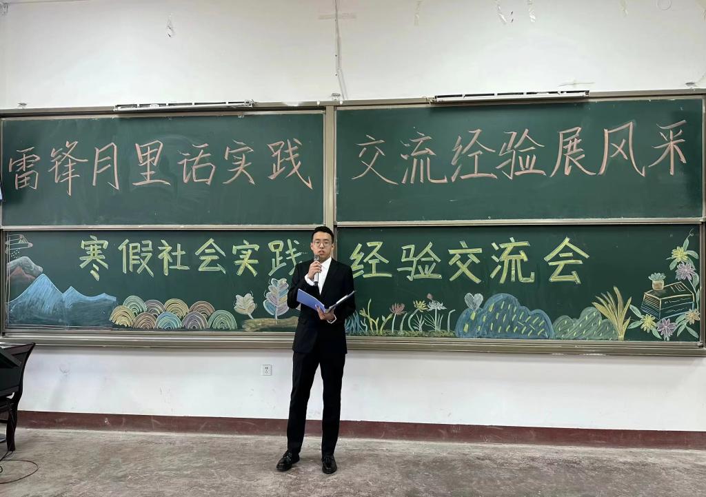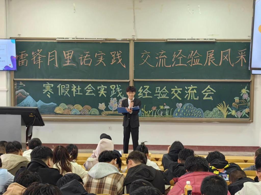 在经验交流上,五位优秀学生代表分别发言,通过PPT展示、现场讲解、图片展示等形式,分享了他们在寒假期间参与的各种社会实践活动,包括社区服务、企业实习、文化传承等多个领域。