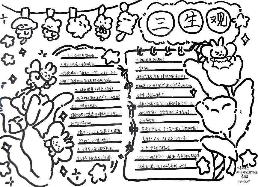 此次“三生观” 手抄报活动,不仅为同学们提供了展示艺术才华的平台,更重要的是,通过创作与交流,进一步认识“三生观”,理解“三生观”,落实“三生观”,让“三生观” 的理念在同学们心中深深扎根。
