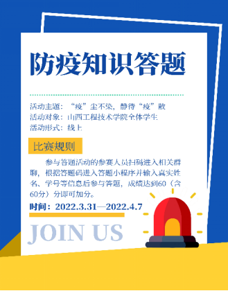 活动时间为3月31日-4月7日,参与人员扫码进群,根据答题码进入答题助手小程序,并输入真实姓名、学号等信息后,正式答题参赛。答题结束后成绩达到60(含60分)分即可加分。