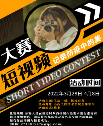 报名时间为3月28日-4月8日,参赛人员在规定时间内按照作品要求进行素材剪辑及视频制作,随后将作品压缩及报名表交由活动邮箱,提交作品即视为报名成功。(邮箱:2718819476@qq.com)