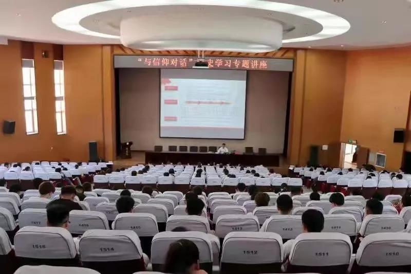 为全面贯彻习近平总书记在党史学习教育动员大会上的重要讲话精神,落实学院党委、团省委党史学习教育的相关要求,引导团员青年树立正确的党史观,筑牢信仰之基,传承红色基因,践履行知合一,做到学史明理、学史增信、学史崇德、学史力行,5月21日,院团委与电信公司联合举办了“与信仰对话”党史学习专题讲座。专题讲座在行知楼一层报告厅进行,学院党委副书记韩永清,中国电信阳泉分公司副总经理刘阳,学院党委委员、宣传部部长杨建军,中国电信阳泉分公司党群工作部主任石文云,政企党支部书记、政企客户部总经理袁绿亮,政企客户部副总经理武政、常志强以及学院各系党总支书记、副书记、分团委书记和同学们共同聆听了讲座。讲座由学院团委书记马秀叶主持。