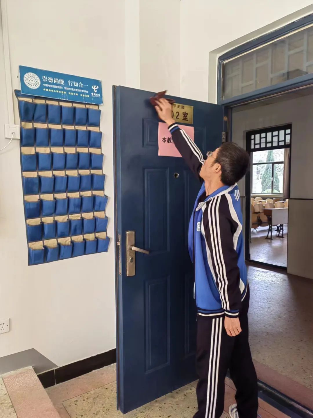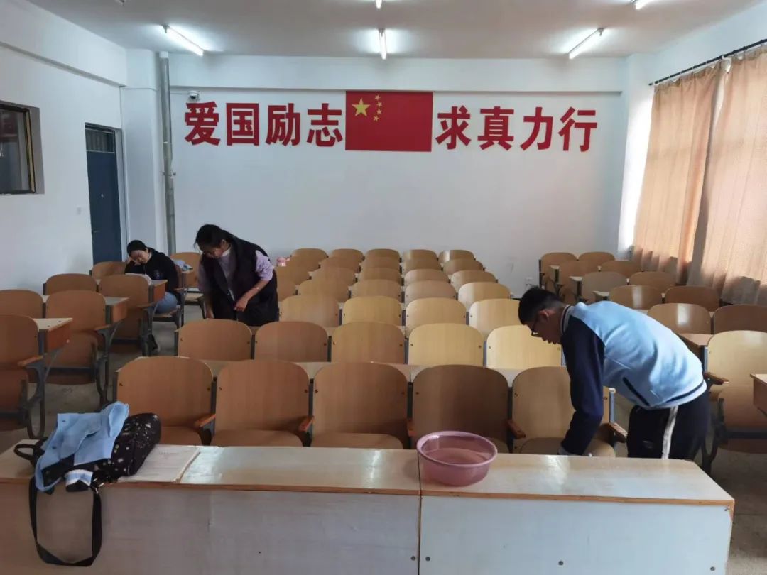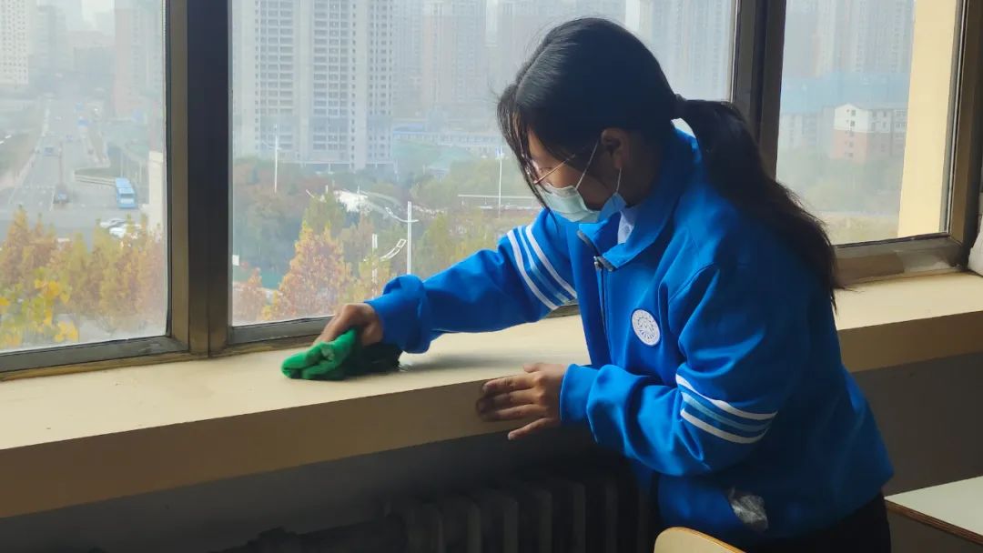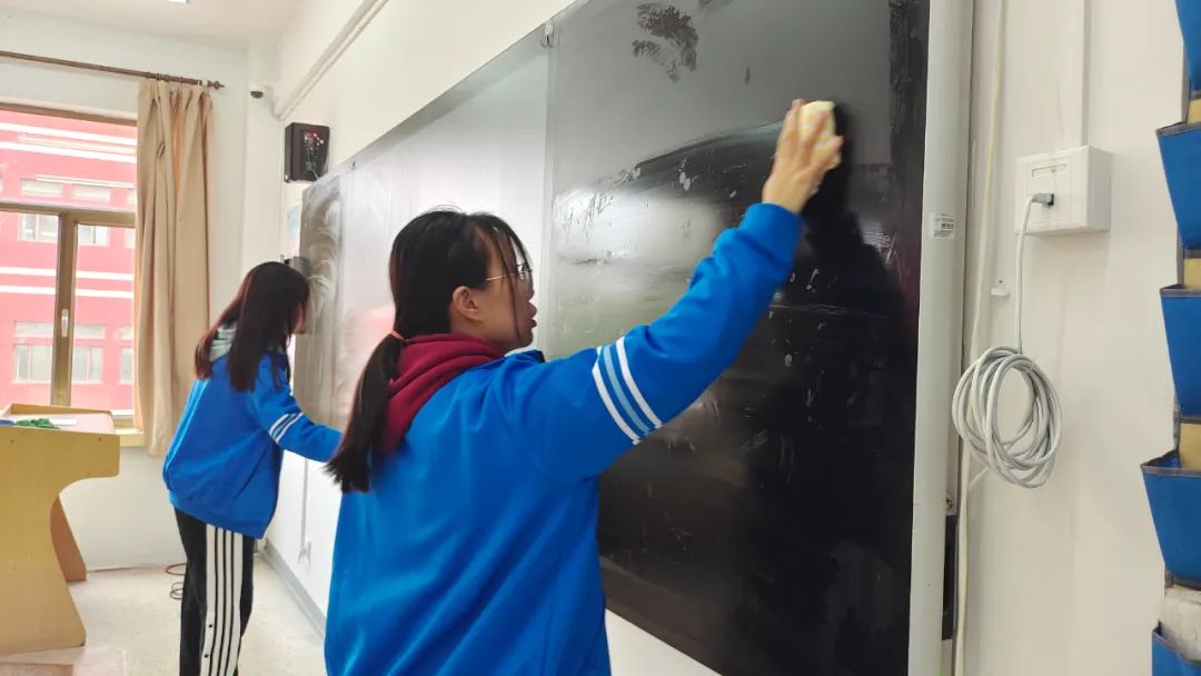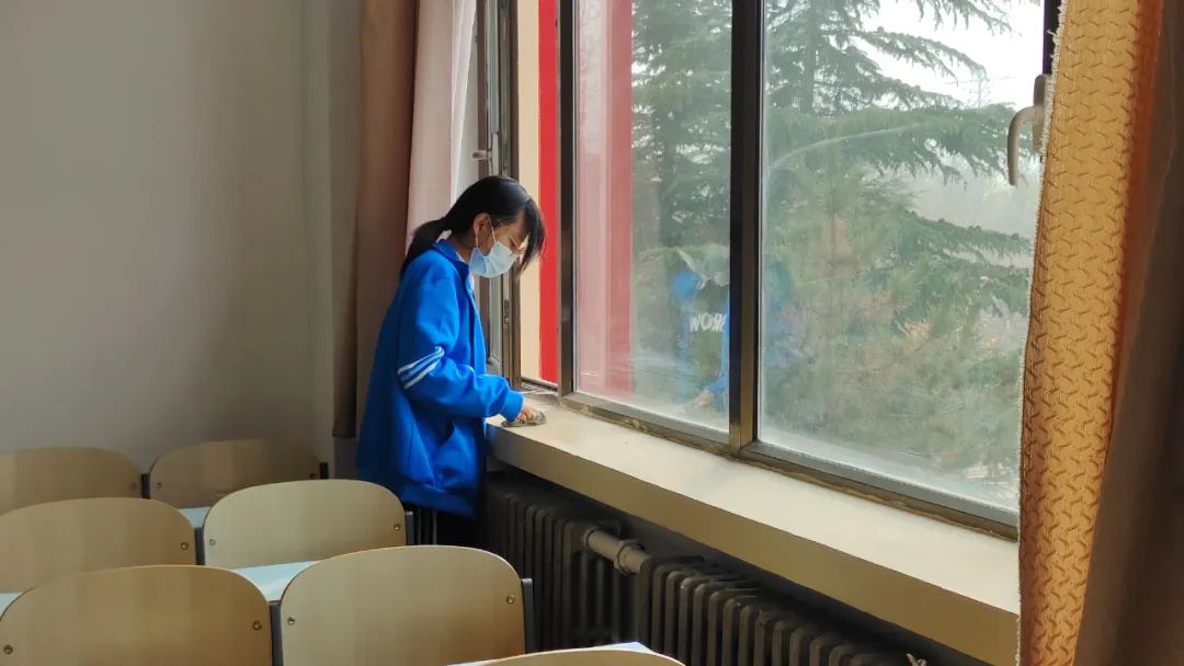 同学们自备工具,穿着统一,准时在指定地点集合,分楼层,分教室,在各区域负责人的带领下有序开始行动。