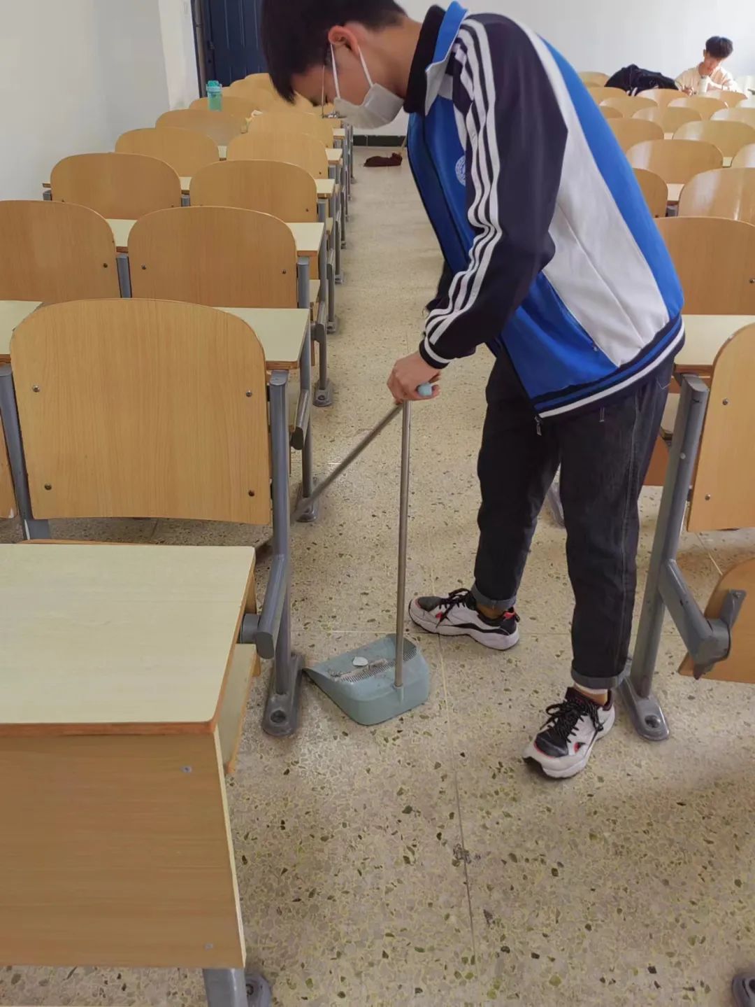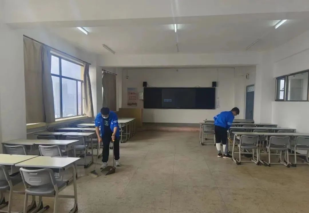 大家分工合作,将教室的地面,桌面和黑板进行认真的打扫,使教室干净整洁。本次活动的开展展现了同学的“奉献、友爱、互助、进步”的志愿者精神。同学们积极参与的身影,是新时代青年的青春风貌,在校园的阳光下熠生辉!