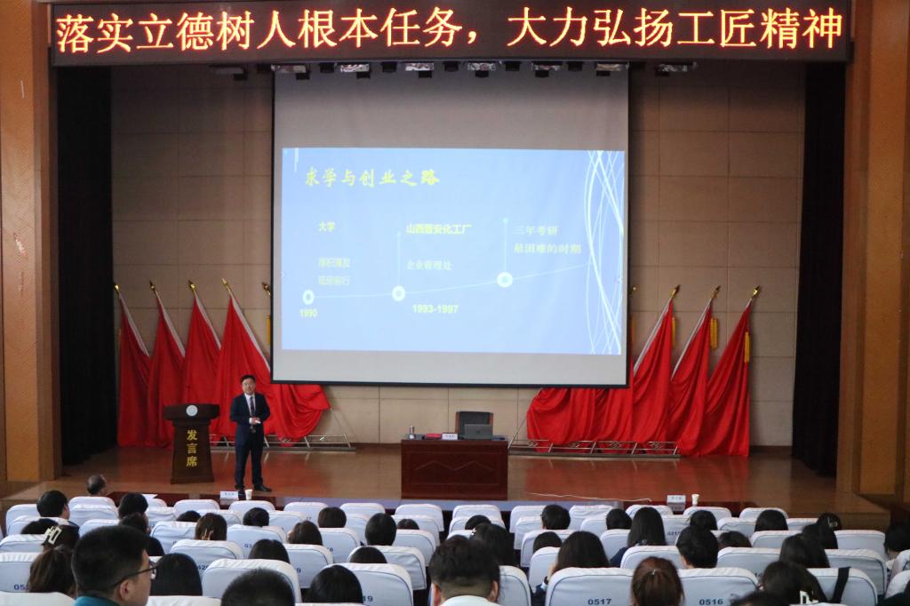 4月26日下午15:00,院团委、对外交流合作部、科研工作部在行知楼报告厅联合举办了“传承工匠精神,践行技能报国”为主题的优秀校友讲座暨“青春故事访谈会”,院党委委员、副院长王建梅教授出席,活动由对外交流合作部王卫红部长主持,460余名同学参加了本次活动。