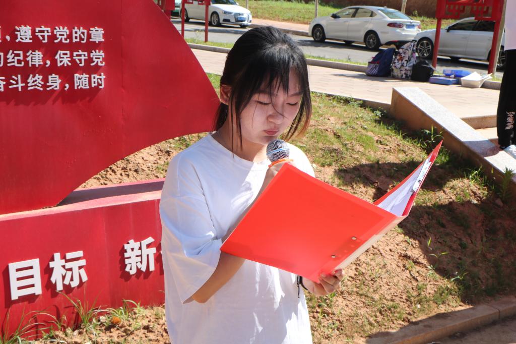 经济与管理系张欣琛同学为新入团团员宣读《中国共产主义青年团章程》中有关团员权利和义务的规定。