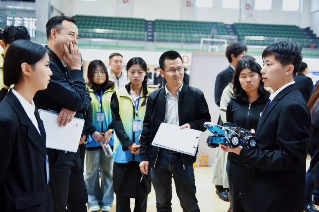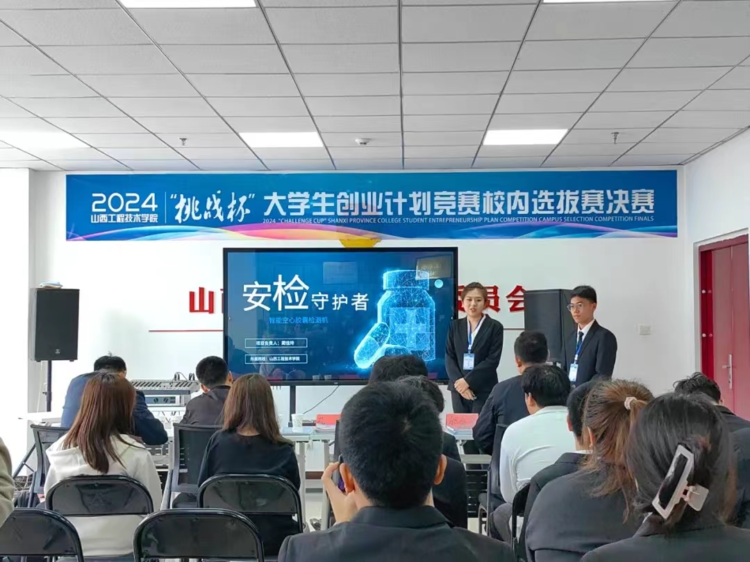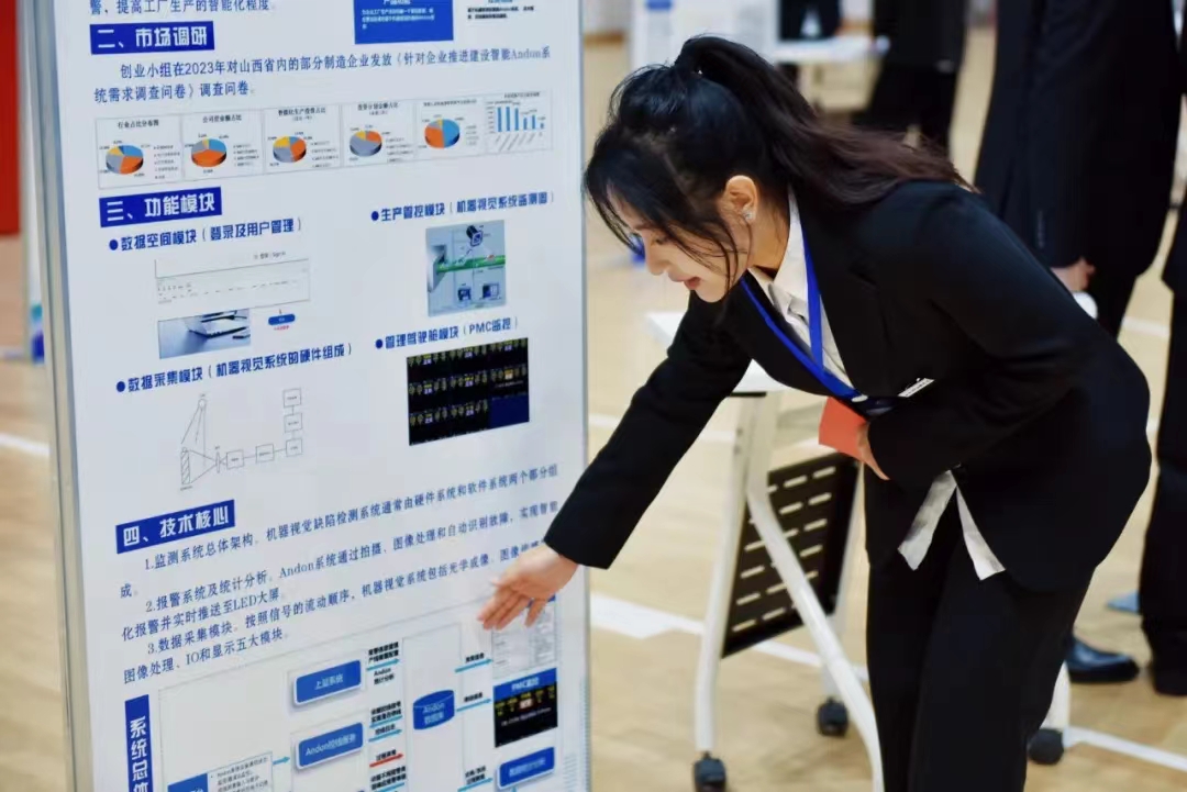 在路演环节,各参赛队伍以展板、模型、实物等多种形式向评委及嘉宾陈述项目内容。他们准备充分、沉着冷静、自信大方,以饱满的热情投入到决赛中,现场创新创业氛围高涨,充分展示出山西工院青年学子勇于创新敢于创新的精神面貌。