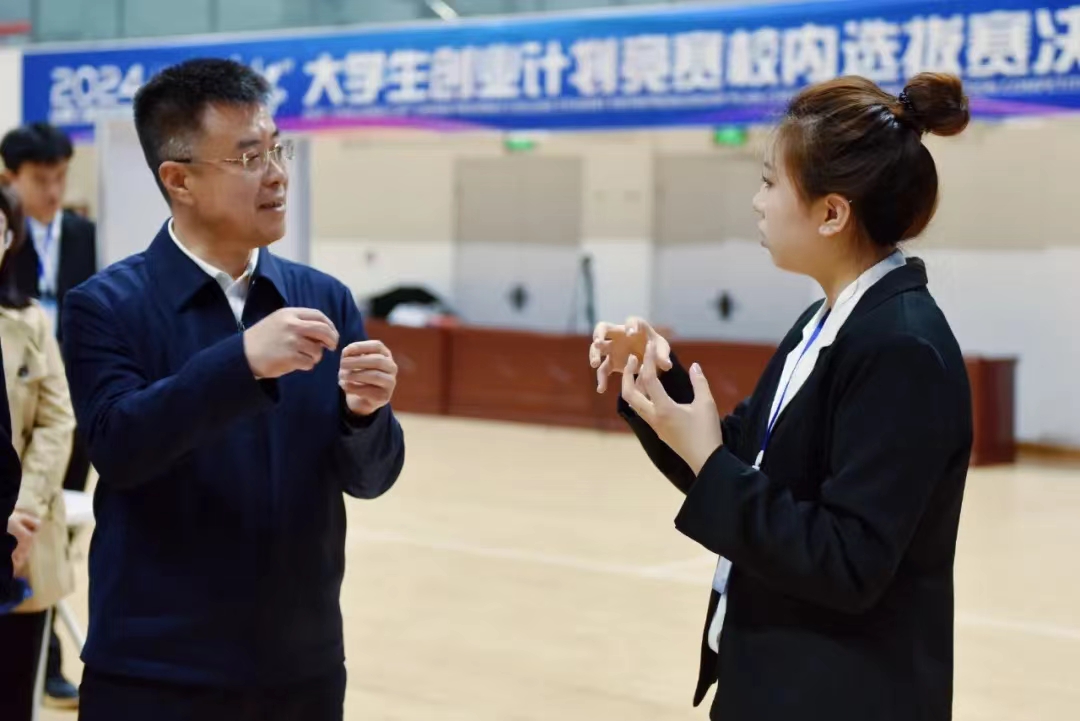 4月19日,ac米兰官方网站2024年“挑战杯”大学生创业计划竞赛校内选拔赛决赛在学院体育馆拉开帷幕。学院党委书记张长青,党委副书记、院长姜俊兵,党委副书记郑捧柱,党委委员、副院长叶玉刚莅临比赛现场,观摩指导。北京中关村智酷双创人才服务股份有限公司副总经理吴文亚,产教融合部部长卢文静等出席开幕式,与全院参赛队伍和师生代表一起,共同参加这场青春盛会。