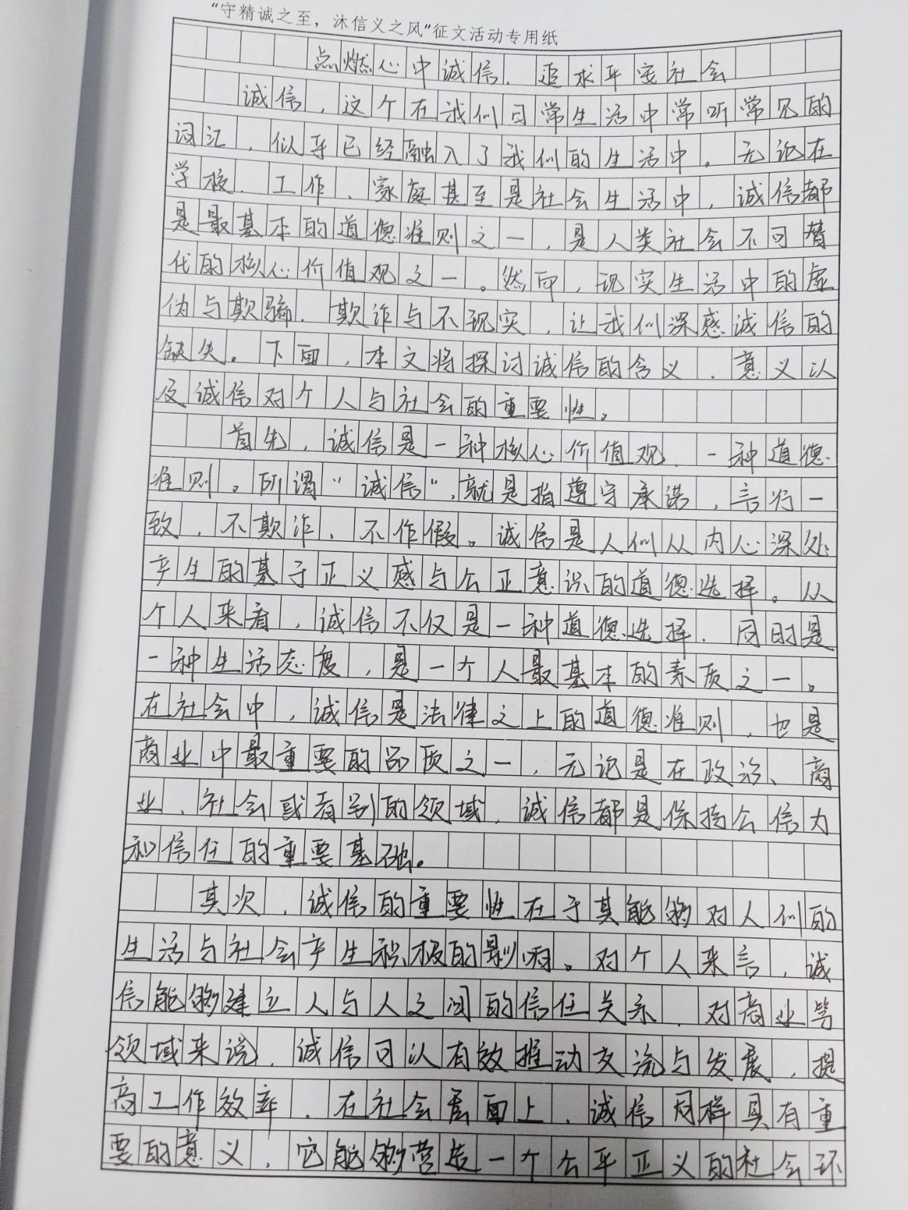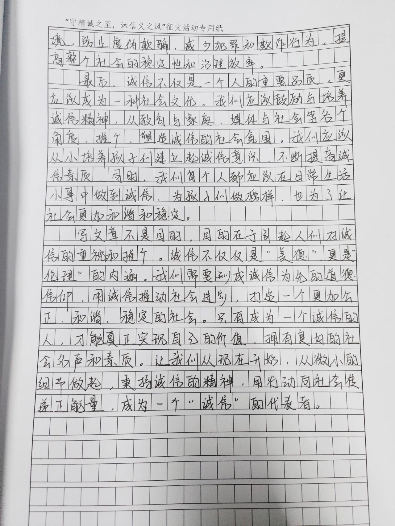诚信是交往的桥梁,各系同学们积极参与本次征文活动,用笔书写出自己对诚信的理解并深刻感受到诚信在我们日常学习生活中的重要性,真正做到与诚信同行,用笔彰显灵魂的美德之花!