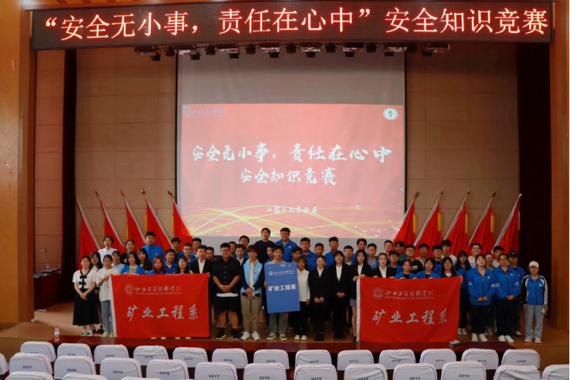 为了响应学院举办的校园文化艺术节,丰富校园文化生活,营造积极向上、健康文明的校园文化氛围,在校园文化艺术节各项活动开展期间,矿业工程系在行知楼报告厅举办了“安全无小事,责任在心中”安全知识竞赛。参加此次竞赛的有矿业工程系、地球科学与工程系、机械工程系、电气与控制工程系、大数据与智能工程系、艺术与设计科学系、材料科学与工程系、管理科学与工程系和土木工程系,9个系共27名选手。此次比赛邀请了校团委副书记张瑶老师,校系学生会主席团成员及各部部长前来为各班参赛选手加油助阵。