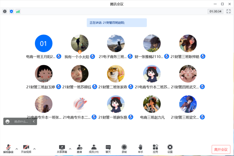 为迎接我校本科教学工作合格评估,营造浓厚的迎评促建氛围,全面了解学生的思想、学习、生活、心理状况,进一步加强班级学风建设,经济与管理系辅导员王华芳组织2021级财务管理、电子商务、电子商务专升本专业学生代表于7月20日下午开展了线上座谈会,共36名学生代表参加座谈。
