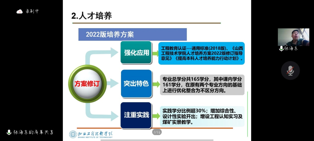 其次,张海东老师介绍了城市地下空间工程的专业,主要从专业建设、人才培养、教学管理三个方面详细阐述。其中,专业建设包括专业设立、师资力量、实验条件以及不断更新的保障措施。最新的人才培养方案修订后,专业教学将从强化应用、突出特色、注重实践为主要培养方向。教学过程将不断优化,从体系优化、内容建设、方法改革等方面进行教学转变,开展启发式、案例式教学。土木系将根据《2022版人才培养方案》培养具有生活责任感和宽阔视野,掌握扎实的专业基础理论、基础知识等,具有较强实践能力和研究创新能力的高素质应用型人才。