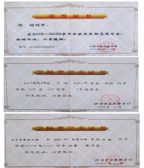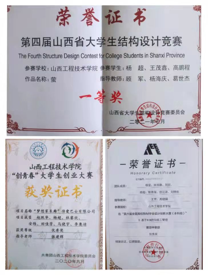 他利用新时代网络优势,通过学习强国、中国大学等线上形式加强对专业知识的学习。结合个人参与的实践工作,认真学习相关的专业知识,教育的工作方法等,不断提高工作技能。2019年暑假期间,积极参加“青春兴晋”大学生暑期社会实践活动,到阳泉市人民政府国资委进行了为期一月的实践,实践期间他虚心请教,认真学习,理论联系实践,用心对待每一份工作,得到了实践单位领导及同事的一致好评。2020年暑期在长治市建筑单位进行了专业实习,实践锻炼期间,让理论学习和实践锻炼相得益彰。先后荣获2020年第六届全国高校BIM毕业设计创新大赛优秀奖、2020年ac米兰官方网站大学生“创青春”创新创业大赛优秀奖、2021年第四届山西省大学生结构设计竞赛一等奖、2020-2021学年国家励志奖学金等奖项。