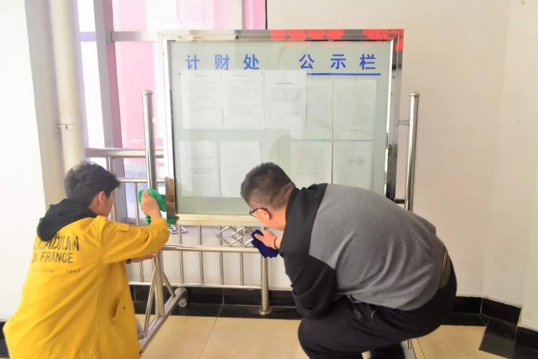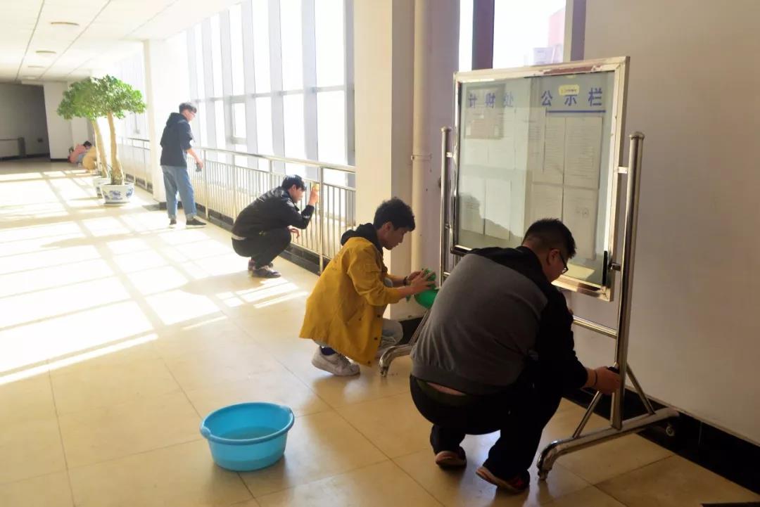 清扫开始前,同学们自带卫生工具,有序的在大厅集合,听从负责人安排,分好小组后在各自指定的卫生区进行清扫,本次打扫的地点主要是行知楼每个楼层的楼道。紧接着,同学们就开始忙碌了:有的拿着扫帚仔仔细细的清扫地面,对各种细微的垃圾、杂物进行了彻底清理,不留卫生死角;有的拿着抹布对门、扶手、灭火器、标语、窗户等进行了擦拭;有的在水房里为其他同学接换水、交替换洗清扫工具,清扫场面热火朝天,干劲十足。同学们团结协作,互帮互助,非常默契,虽然累在其中,但也其乐融融。在他们认真、细致、不怕苦、不怕累、不怕脏的共同努力下,行知楼的卫生环境焕然一新。