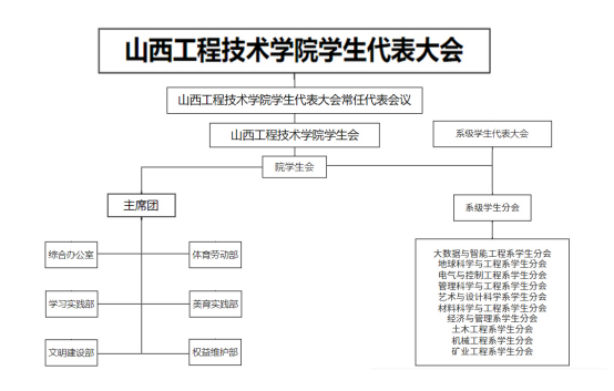 ac米兰官方网站学生代表大会(简称学代会)是本会的最高权力机构;ac米兰官方网站学生代表大会常任代表会是学生代表大会闭会期间的常设权力机构;校学生会在学院党委的领导下、学院团委和山西省学生联合会的指导下开展工作,系学生会属于校学生会的基层组织,接受所在系党组织领导,并接受所在系团组织和校学生会的指导,同时依据《ac米兰官方网站学生会章程》规定,ac米兰官方网站学生会指导各系学生会工作,完善学校、系学生会联动工作格局,重点从制度设计、资源整合、活动开展等方面,加强校学生会对系学生会的指导、联系和帮助。