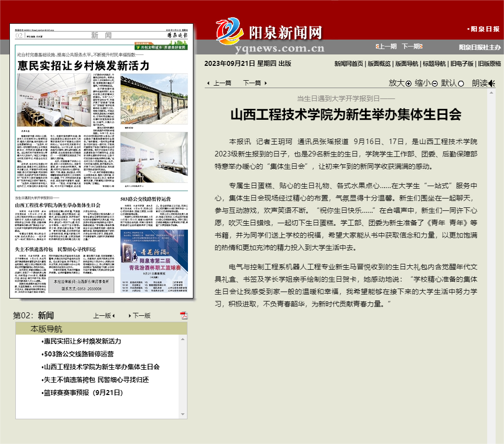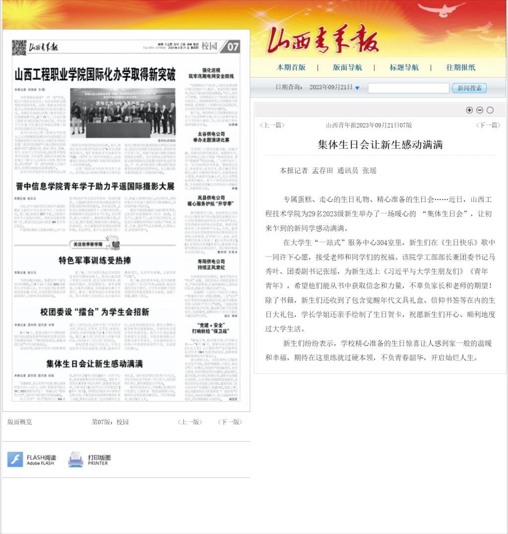 9月16日、9月17日是ac米兰官方网站2023级新生报到的日子,学院团委为29名2023级新同学举办了集体生日会,山西青年报、阳泉日报、黄河新闻网等多家媒体对生日会进行了报道。