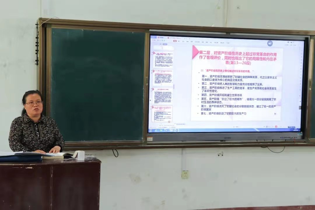 张老师首先讲解了《共产党宣言》问世的社会历史背景,讲述了19世纪资本主义制度的基本矛盾,概述了无产阶级政党组织的发展;回顾了无产阶级和资产阶级的对立和斗争;总结了无产阶级革命斗争的新鲜经验,丰富和发展了宣言的基本原理;提出了对宣言的重要修改和补充;指出了正确理解和对待宣言应有的态度;论述了马克思主义的策略思想。接着,张老师为学员们讲述了《共产党宣言》的四章正文,分别为:无产者与资产者、无产者和共产党人、社会主义和共产主义的文献、共产党人对各种反对党派的态度。在原文的学习过程中,张老师对每一段的具体意义和历史背景进行剖析解读,并条理有序地对重要内容做了阐述,讲明了《共产党宣言》是国际无产阶级第一个具有新思想、新原则和新组织结构的共产主义政党的政治纲领。最后,张老师指出《共产党宣言》的历史地位和现实意义,她要求青马学员要认真研读《共产党宣言》全文,深刻理解马克思主义,坚定信仰马克思主义。