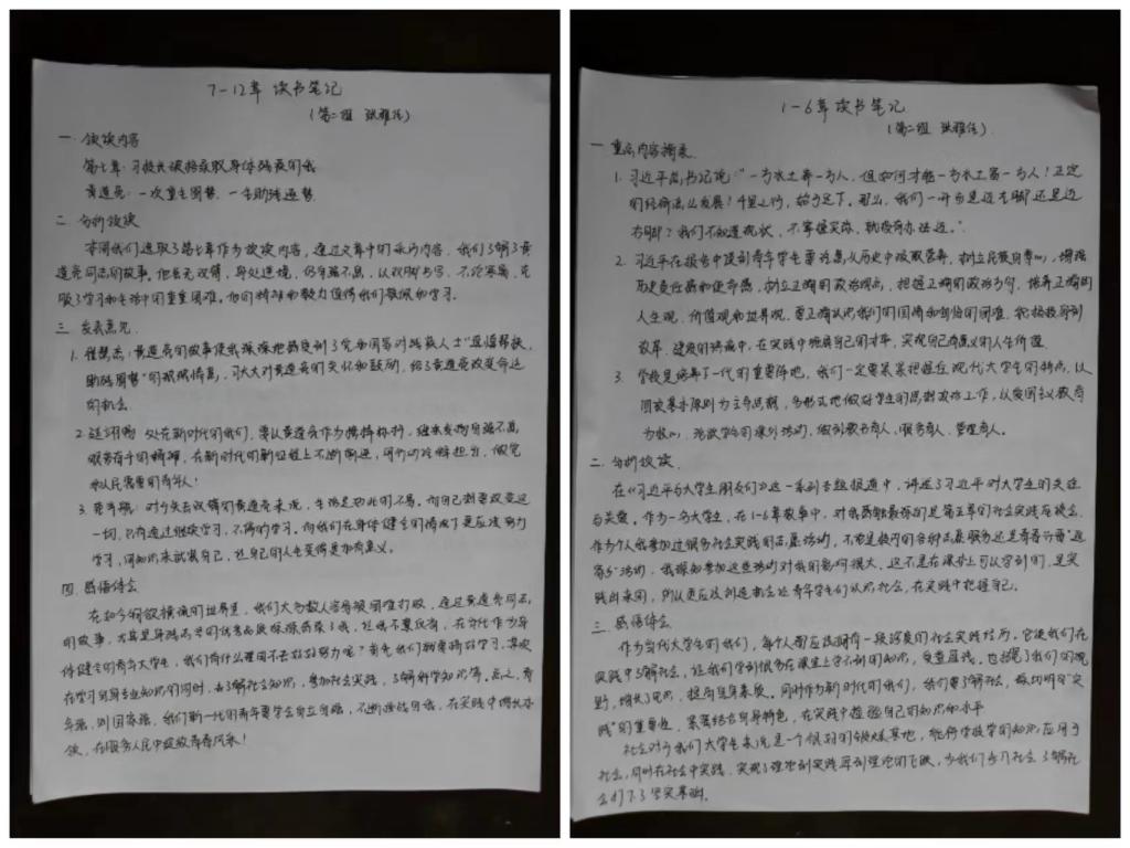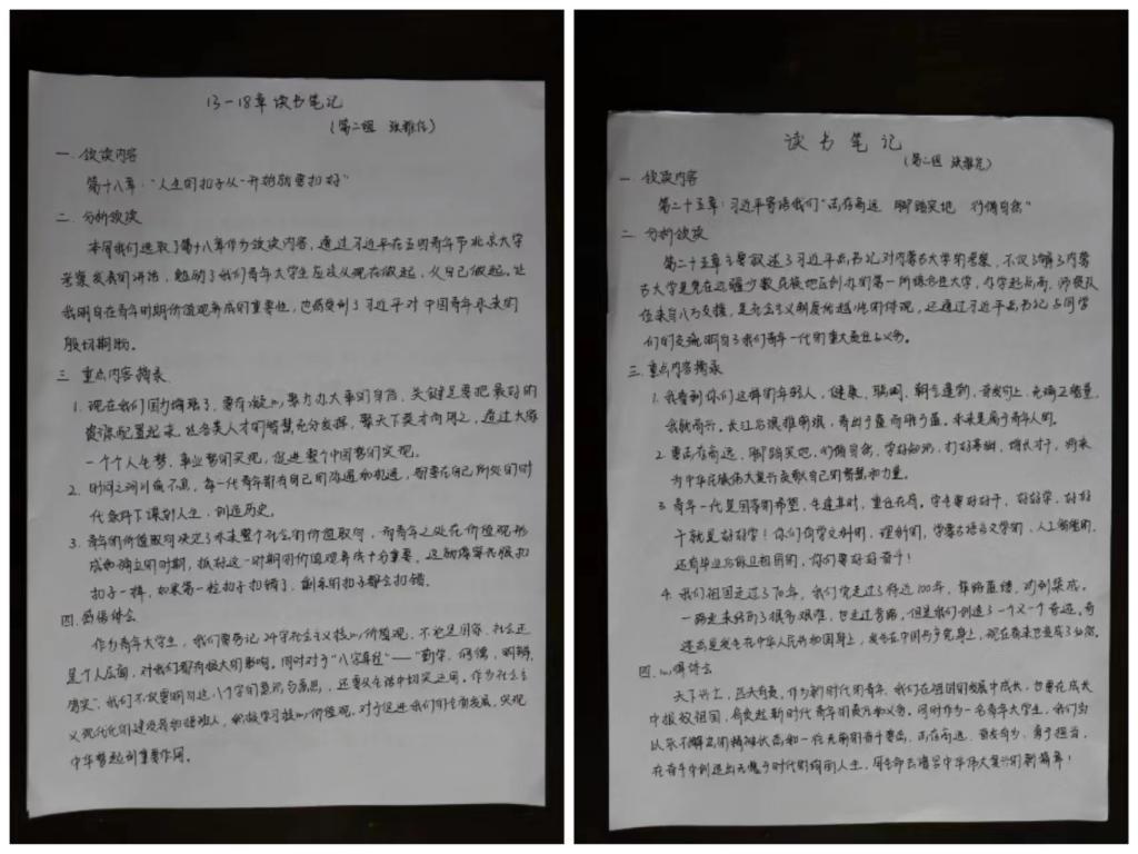 在青马工程《习近平与大学生朋友们》的读书活动中,青马学子读精华,记思考,用工整的字迹,清晰的逻辑,书写着自己学思间的碰撞。现在,让我们一起翻开这些笔记,感受理论的精华,思想的沉淀。