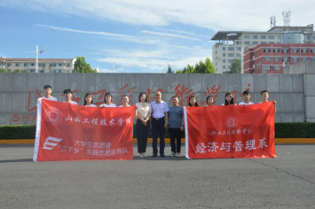 为引领我系青年大学生在社会实践中“受教育、长才干、做贡献”,紧密地联系和组织广大青年,推进暑期“三下乡”社会实践活动的开展,经济与管理系“E起触电,乡约岢岚”志愿服务队于7月18日8点在校门口举行了出征仪式,党总支书记高文革、副书记王琳、组织员王建荣和全体队员参加了出征仪式。