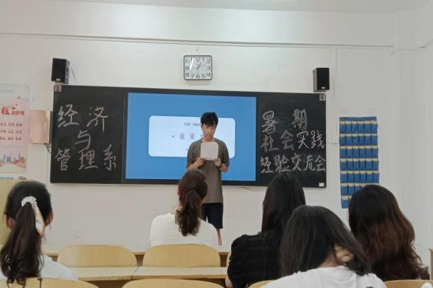 2023年9月5日中午1点,经济与管理系在勤学楼110教室开展了暑期三下乡、返家乡经验交流会。经验交流会上,共有8名同学向大家作了暑假社会实践的经验分享。他们结合所学专业知识和自身优势,分别从“三下乡”社会实践“返家乡”社会实践 “重回母校”专项社会实践活动三个专项实践进行交流,分享了在暑假实践的经历,并从不同角度畅谈了自己暑假社会实践的感受。