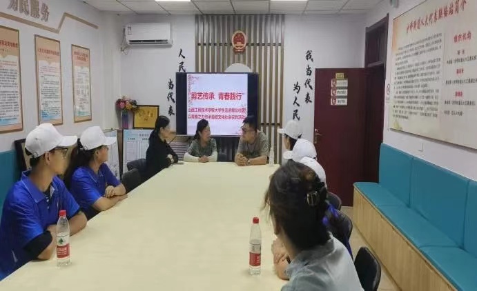 7月8日,学院团委组队的“指尖拾‘遗’”大学生暑期“三下乡”社会实践团队,深入阳泉市一矿蒙北社区探索非物质文化遗产项目——剪纸,了解其文化和传承现状。