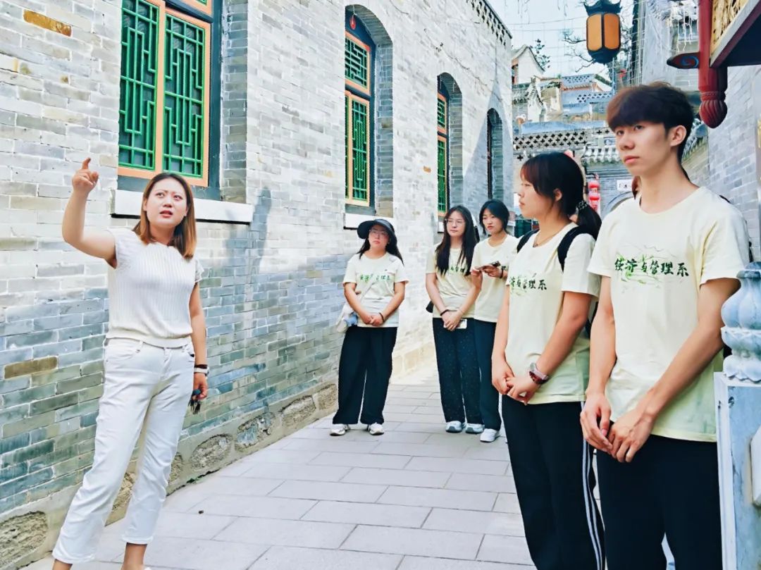 上午,实践团队跟随讲解员的步伐踏入荫营古镇。队员们穿梭在古镇的巷道间,聆听着讲解员讲述那些尘封已久的历史故事。从古镇的起源与发展,到曾经的商贸往来、民俗风情,大家在一砖一瓦、一草一木中,溯源古镇的文化脉络。古老的庙宇、传承百年的手艺作坊,都成为了队员们了解乡土文化传承的窗口。这份厚重的历史感与文化温度,深深烙印在每一位队员的心中,让他们对乡村文化的传承与发展有了更深刻的思考。