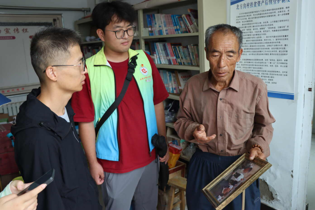 告别白家大院后,团队有幸采访到了当时在宋家沟村三棵树广场和习近平总书记握手的村民郭振荣。郭振荣脸上洋溢着质朴的笑容,眼神里透着和善与亲切。当回忆起当年和总书记握手的场景,郭振荣的眼神一下子亮了起来。他拿出当时与习近平总书记握手的照片,激动地说:“那可是我这辈子都忘不了的时刻,总书记特别亲切,就像自家亲人一样,握着我的手,问我家里的情况,我当时紧张得不行,但总书记的笑容让我一下子就放松了。”在交谈中,队员们深切感受到郭振荣对当今生活的满足,以及对未来充满希望的憧憬。