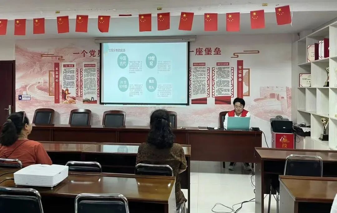 宣讲团首先以数据说明垃圾分类意义:1吨废纸可少砍17棵树,1个塑料瓶可再生为3个笔筒。详解“四分法”及要点:可回收物含纸、塑料、金属、玻璃、织物,投放时需将废纸叠齐、塑料瓶清空、金属压扁以提高效率。有害垃圾包括电池、灯管、过期药品等,含汞、镉等有害物质,需投红色垃圾桶,避免破损泄漏。厨余垃圾如剩菜、果皮等易腐物,沥干水分后放绿色桶,夏季需及时投放防异味。其他垃圾如砖瓦、卫生间废纸等,投灰色桶,尖锐碎片建议用报纸包裹。同时介绍家庭分类技巧:厨房、阳台、卫生间分设专用容器,定时投放。以上海、北京等地案例为例,鼓励居民养成分类习惯。