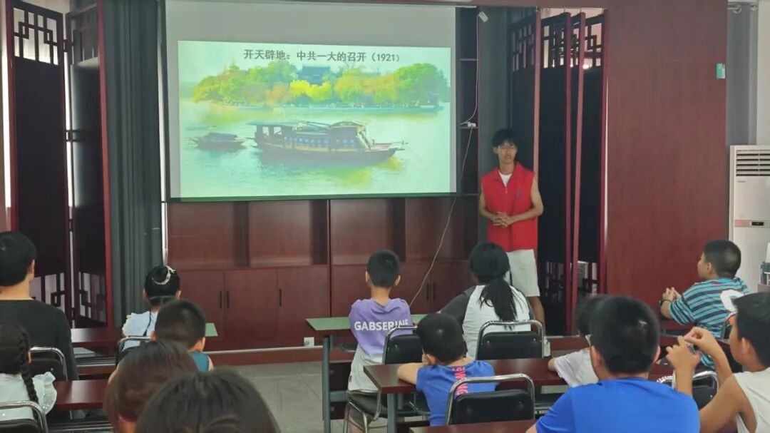 随着宣讲推进,目光从南湖红船转向革命、建设与改革时期。抗战时“最后一碗米做军粮”的鱼水情;解放战争中,人民用小推车推出淮海战役胜利;社会主义建设时期,亿万群众为工业化挥洒汗水;改革开放中,民众敢为人先探索创新……胡立钢讲述这些故事时,特意加入“红色词语规范读写”互动,志愿者们引导青少年正确书写“峥嵘”“砥砺”“磅礴”等具有时代印记的词汇,通过解析词语背后的历史语境,让青少年们在语言学习中深化对历史的理解。