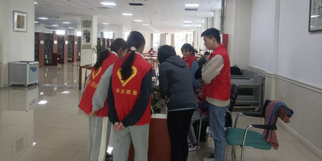 在这知识的海洋里,每位志愿者都秉持着“奉献、友爱、互助、进步”的志愿服务精神,贡献出自己的一份力量。他们为大家解疑答惑、维持秩序、摆放桌椅,为同学们营造了一个良好的学习环境。同学们在图书馆认真学习,志愿者们守护这片学习的净土。