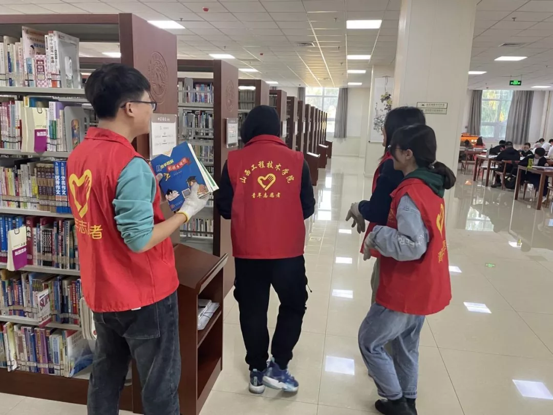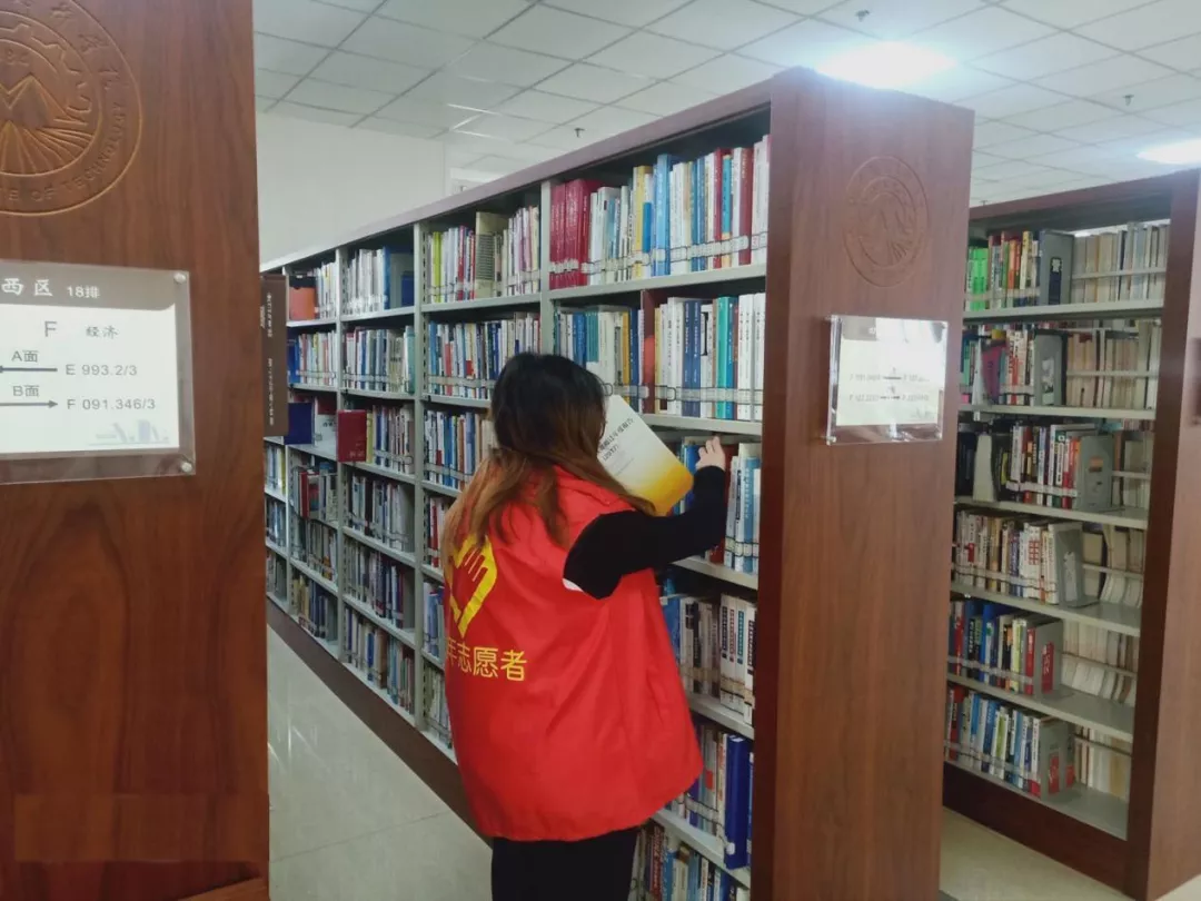 博尔赫斯曾说过:“如果有天堂,那它一定是图书馆的样子。”图书馆是喧闹校园中的诗意居所,更是与先哲伟人促膝长谈之地。读书,是我们和世界和交流的方式,愿我们多和这个可爱的世界聊聊……在这金秋时节,图书馆志愿活动的志愿者们在山西工院图书馆中身穿红色马甲,穿梭于零落的书卷中,归置整理、拾缀书籍,帮助同学们答疑解惑。