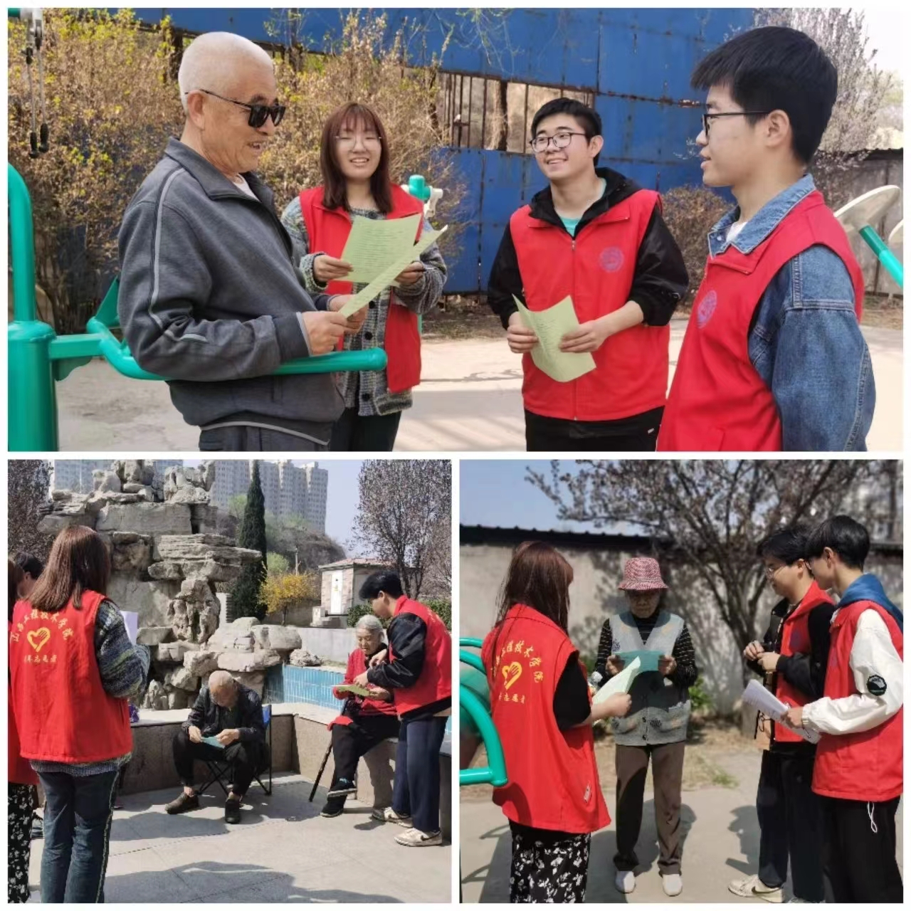 中午12点,每个小组的同学们都顺利完成了各自所管辖区的全部任务,其中有不少同学是第一次承担上门宣传的工作,同学们刚开始的心情是忐忑的,但当问卷调查工作、建议征集的工作顺利结束后,同学们的脸上都洋溢着成功的喜悦和收获的愉悦,同学们说:“当我敲开门看到社区老人和蔼的表情以后,心里的忐忑就消失不见了。”