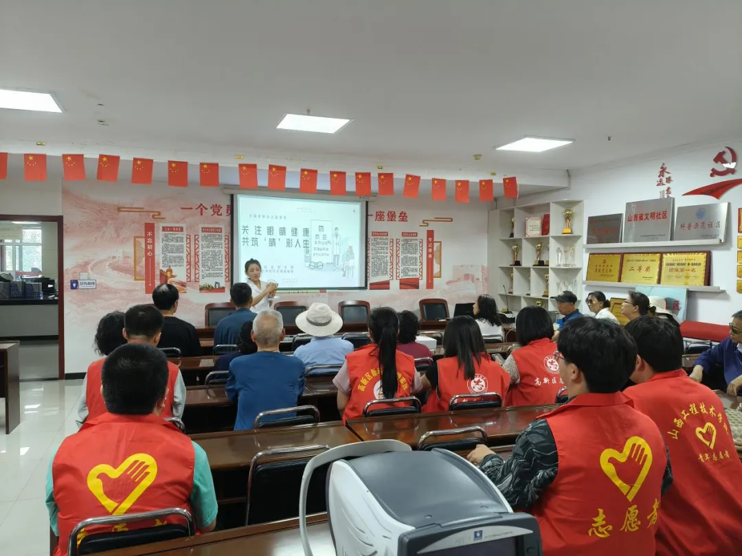 最后,社区工作人员强调了正确用眼习惯的重要性,提倡大家保最后持良好的用眼姿势、适时休息、避免长时间连续用眼,以预防眼部疲劳和近视的发生。活动期间还对社区居民进行眼睛健康的检查等。