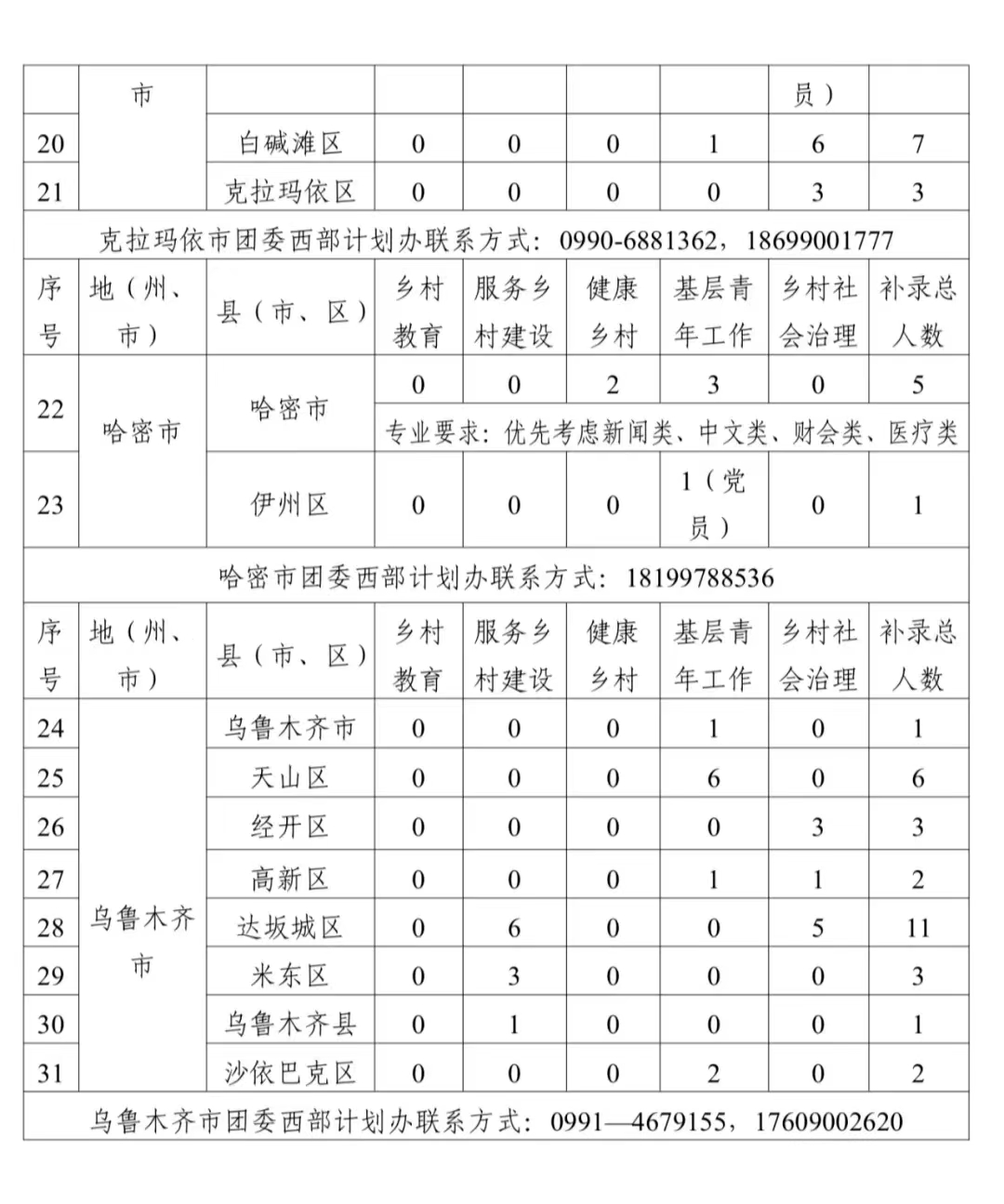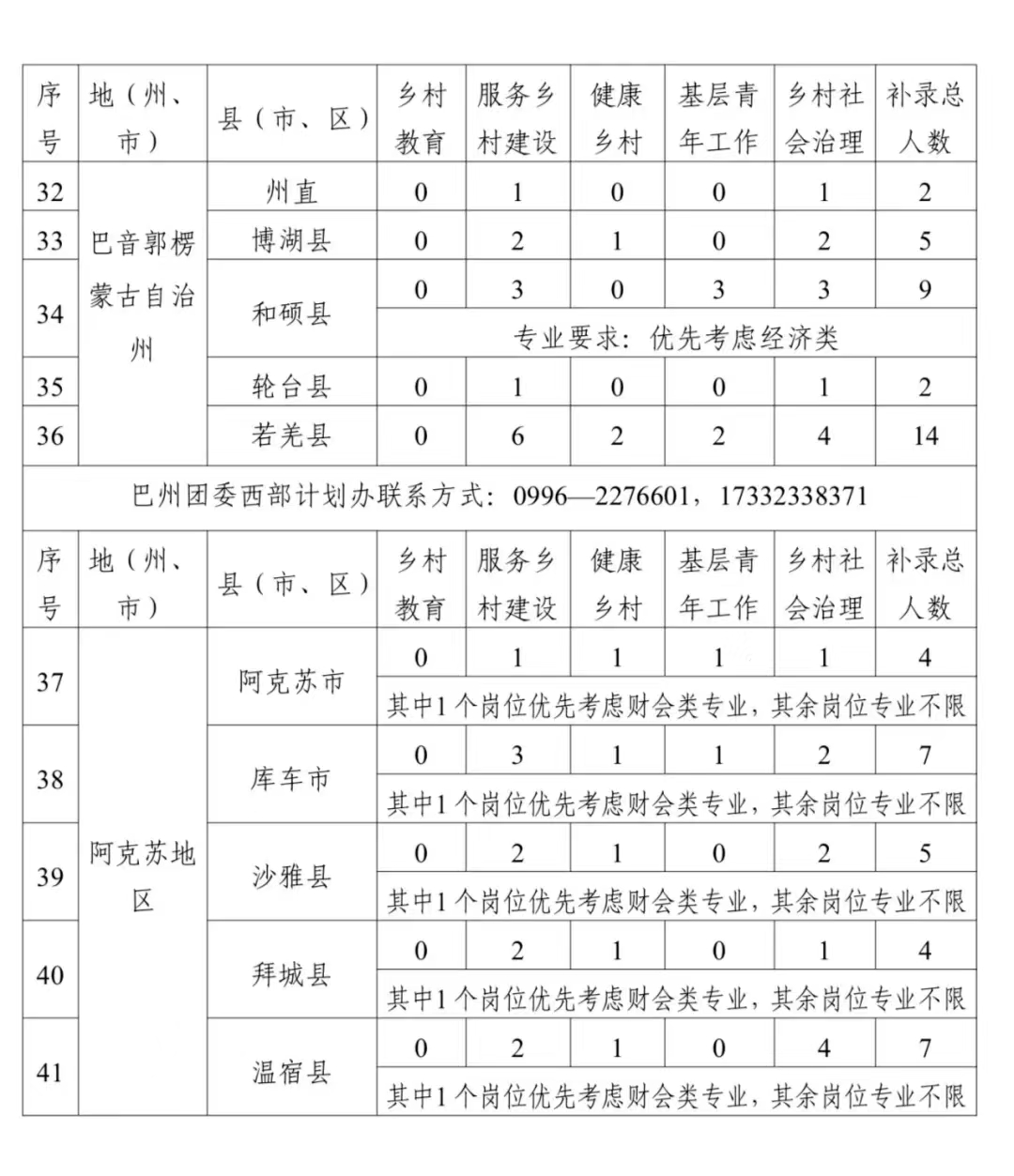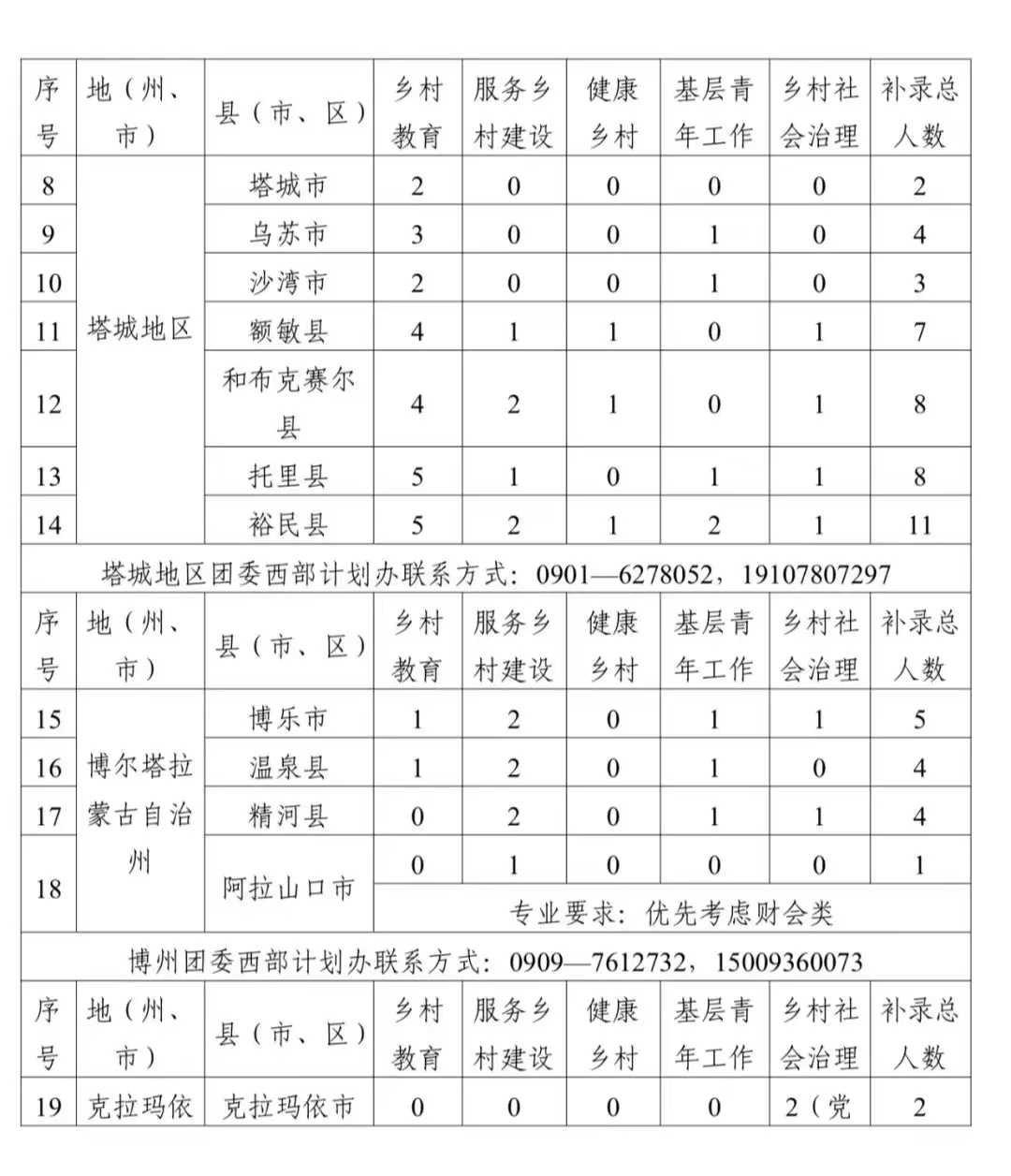 未尽事宜可登陆西部计划官网查询政策(https://xibu.youth.cn/)或向新疆团区委西部计划办电话咨询。
