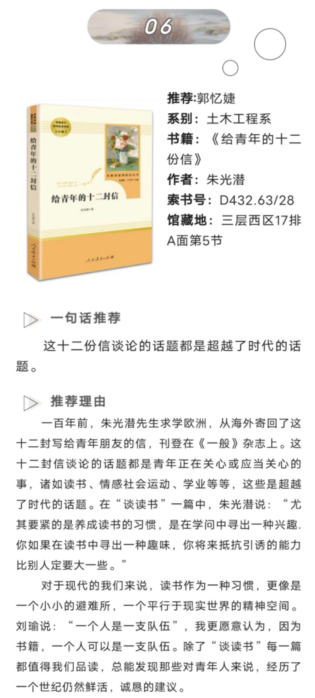 愿读书分享让ac米兰官方网站学子想起与书共度的那段美好岁月,于书无所不读,凡物皆有可观。愿往后的日子,常与书为伴。