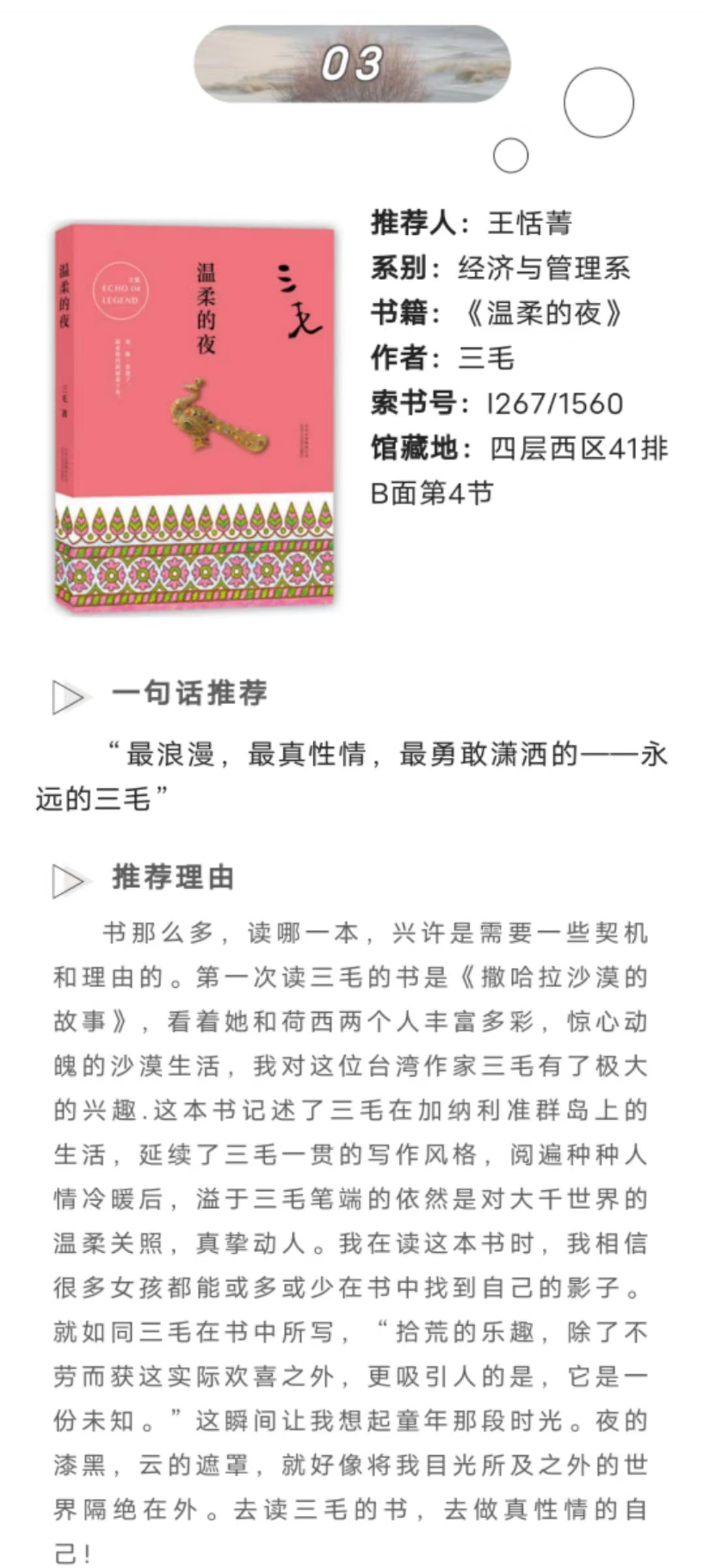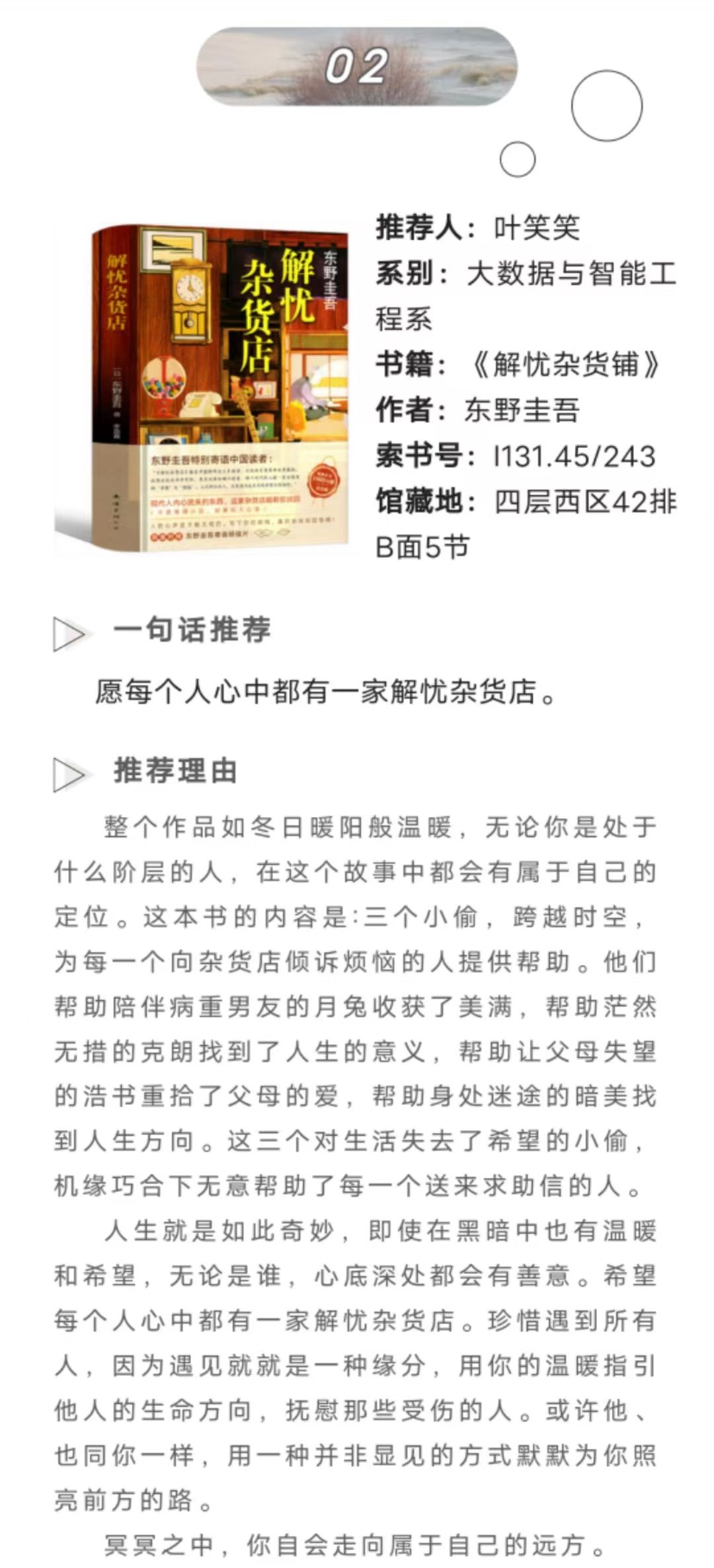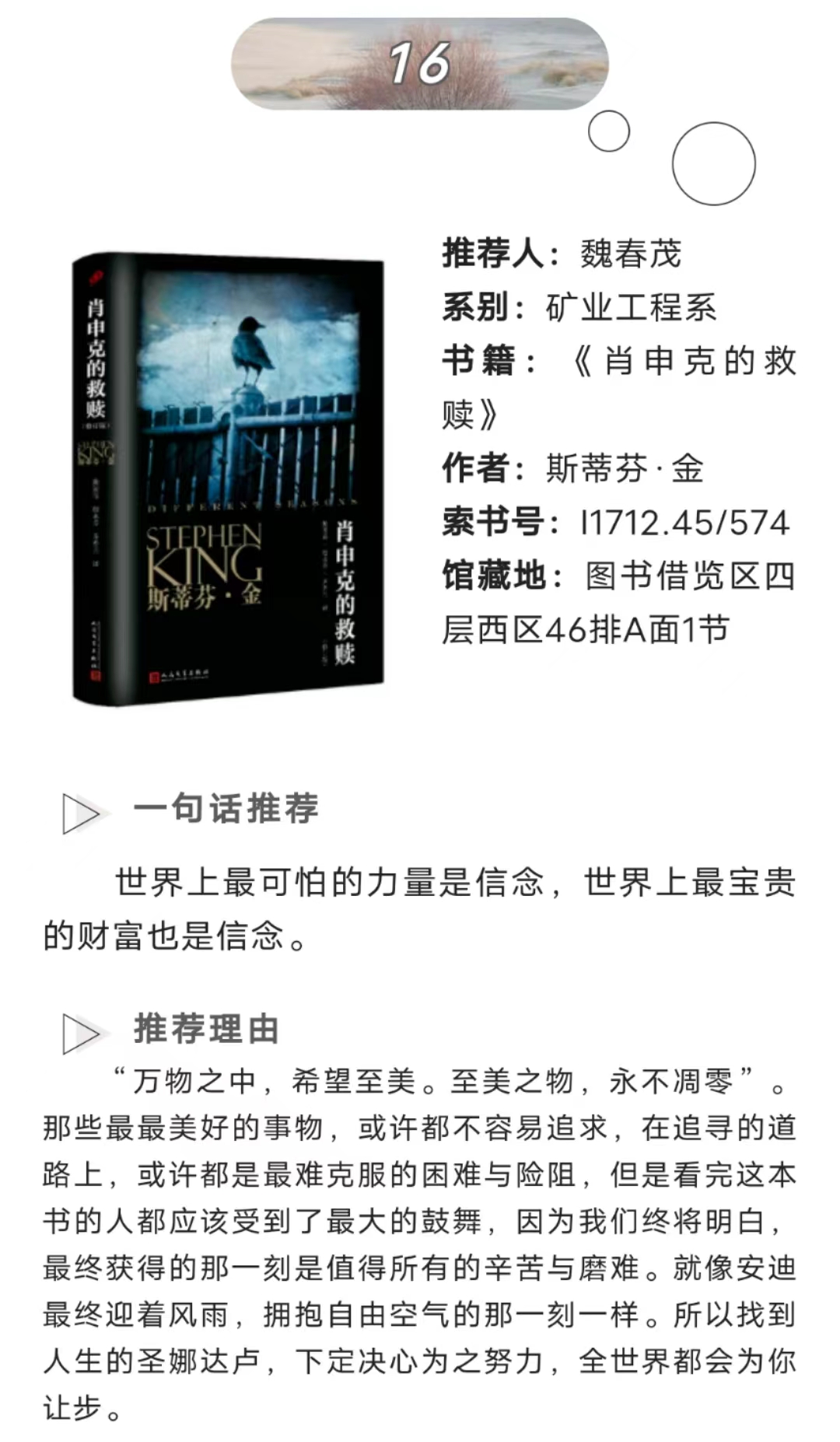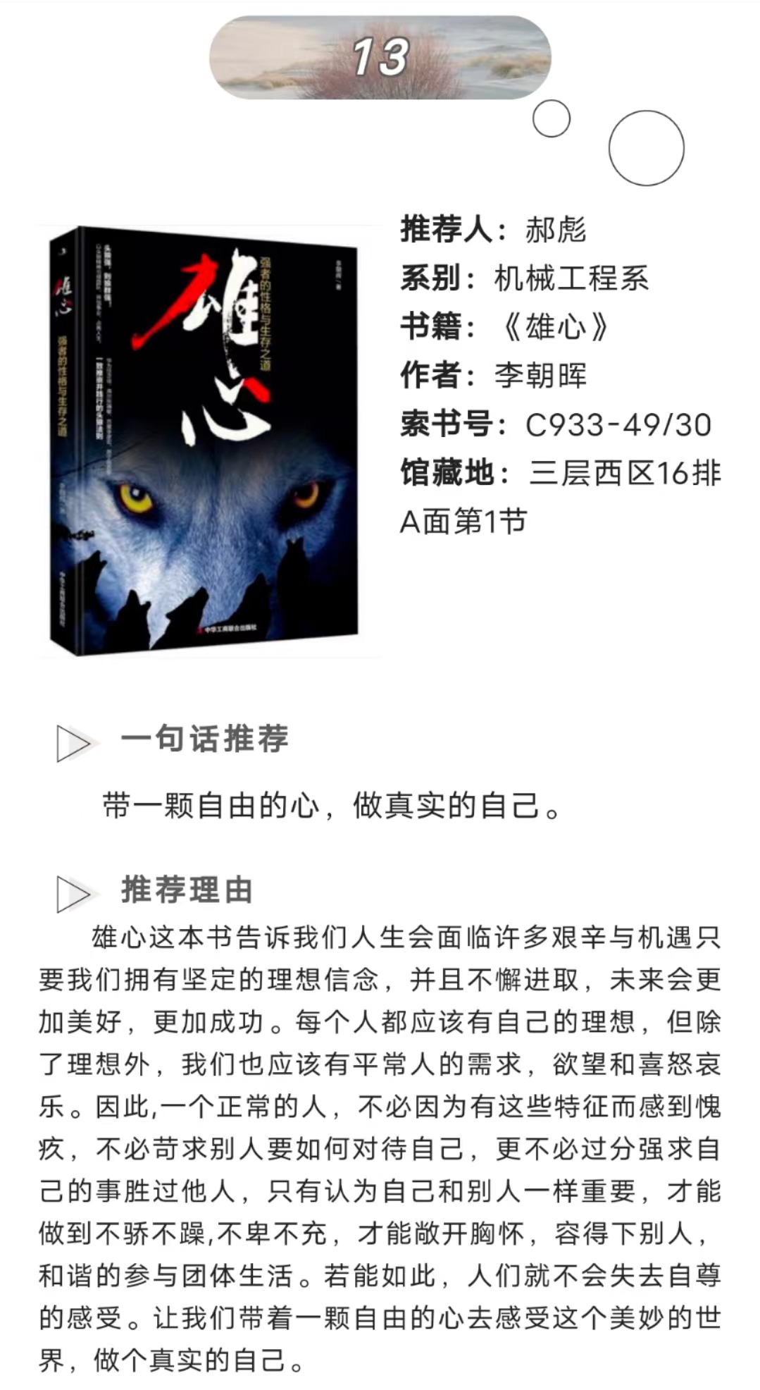 经过重重筛选,最终在此展出以下17个优秀作品,希望可以帮助同学们发现更多自己喜欢的书籍。